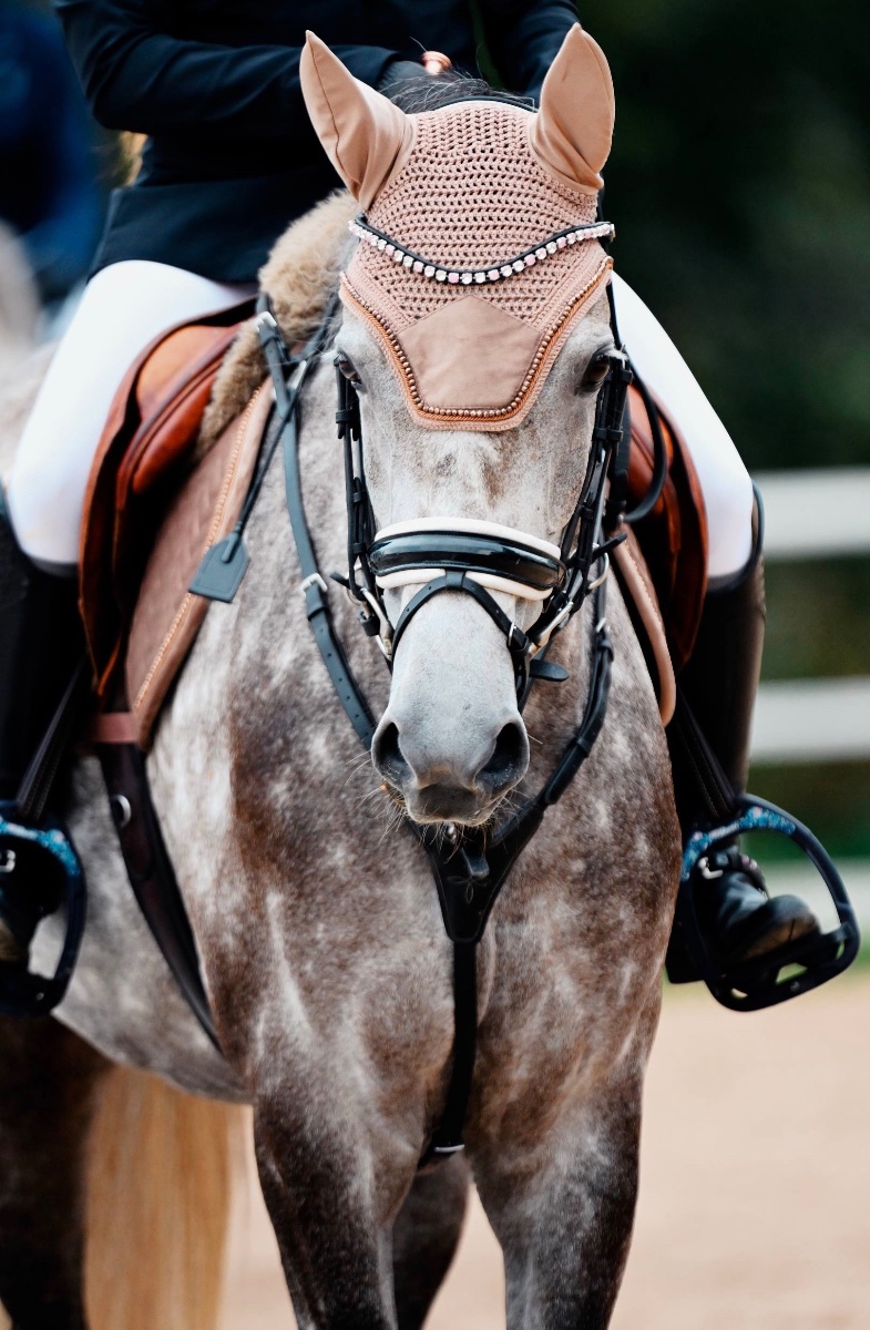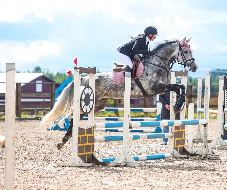 Старты - маршруты до 80 см, Детские езды. Дома - маршруты до 90 см, гимнастика до 115 см, одиночные до 120 см; готовится к ППЮ (принимания, сырые менки, уступки, плечи, повороты на заду, траверс). С удовольствием ходит в поля. Комфортная в быту.