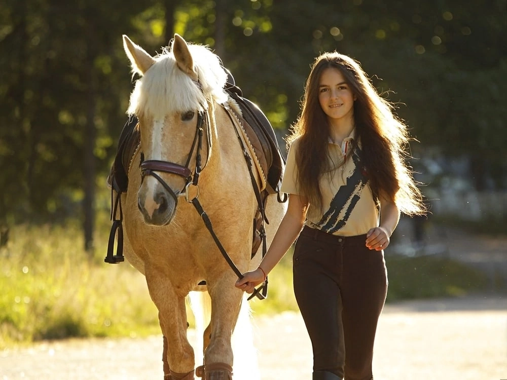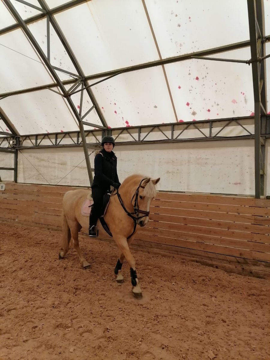 Очень приятная по аллюрам, удобная на рыси и галопе. Уровень детских езд+ плечи и уступки.