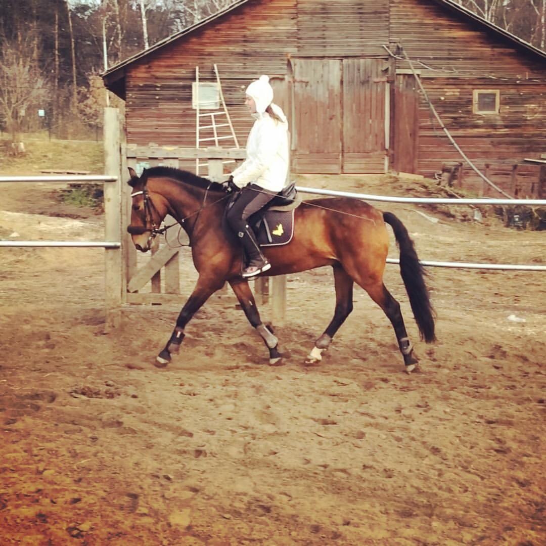 Конь добрый, веселый и общительный парень никогда не заставит вас скучать в серые будни =) Без вредных привычек, ничего не боится (чистится, колется, расчищается без проблем). На хороших аллюрах, особенно мягкая рысь, идеальна для обучения правильной посадки. Отлично подходит под обучение начинающих всадников и детей азам верховой езды! А также будет интересен для любительского спорта (идёт переквалификация в выездку).