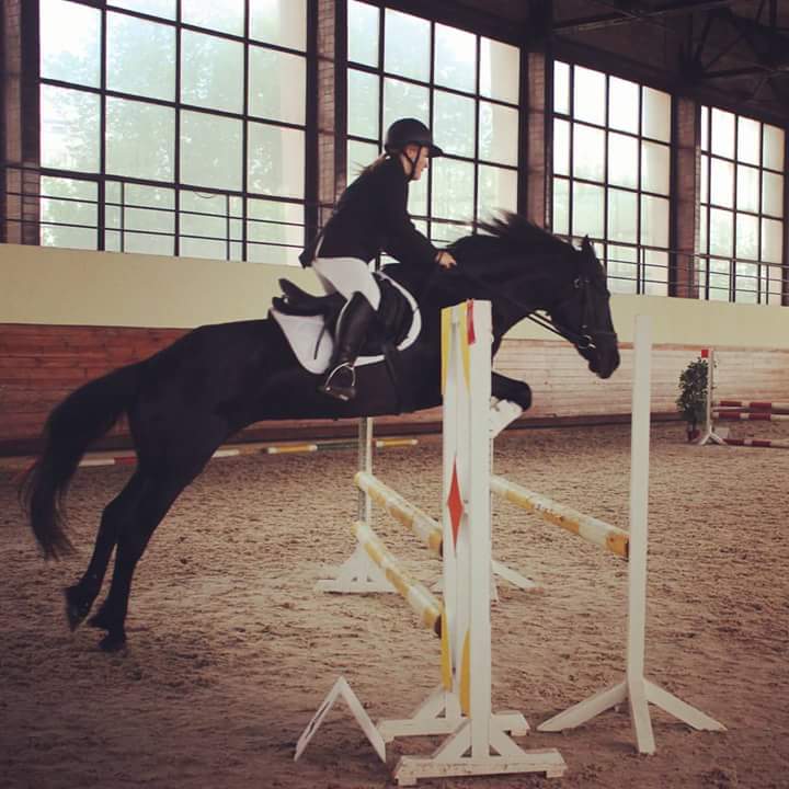 Удобная, мягкая, безопасная. Можно попрыгать 60см. Есть манеж, плац, поля, лес.