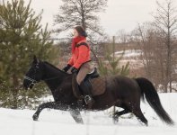 В поля ходит один неспеша, уверенно, не скидывает, не разносит, не пугается птичек, тракторов, выстрелов и прочего. Повод можно распустить и расслабиться, насладиться природой. Очень чувствительный, хорошо понимает команды корпусом, голосом, любит покушать.