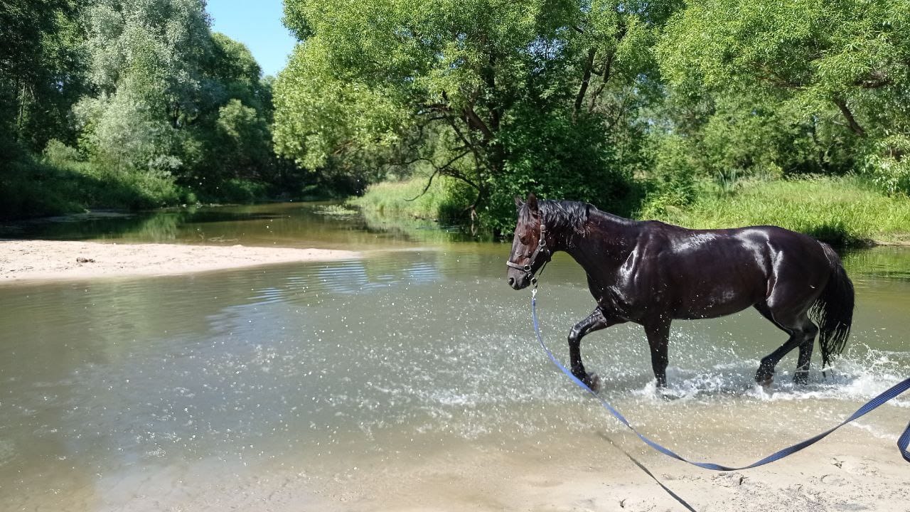 В поля ходит один неспеша, уверенно, не скидывает, не разносит, не пугается птичек, тракторов, выстрелов и прочего. Повод можно распустить и расслабиться, насладиться природой. Очень чувствительный, хорошо понимает команды корпусом, голосом, любит покушать.