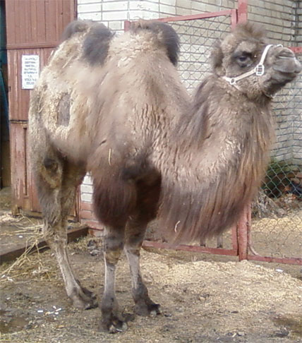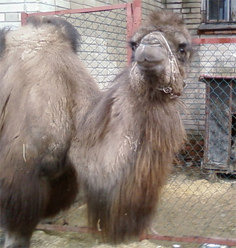 В среду меня не было в конюшне, приезжаю туда в четверг и вижу, что привезли верблюда! (Ходили слухи, что за ним поехали, но я почему-то не поверила). Верблюд (точнее верблюдиха) стояла в деннике, который поставили в углу крытого манежа. Никогда так близко я верблюда не видела, почему-то первым возник вопрос – «А она не плюется?...». Верблюдихе всего 2 года, она ужасно лохматая и худая, с двумя горбами.