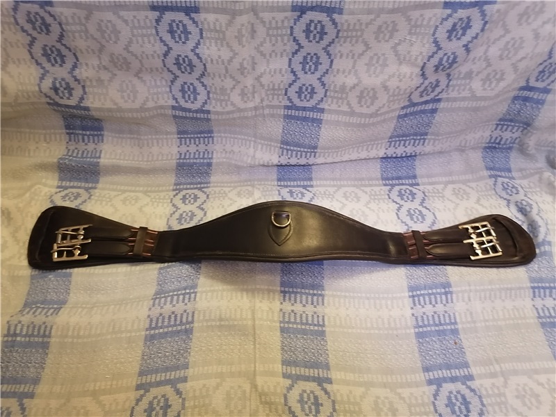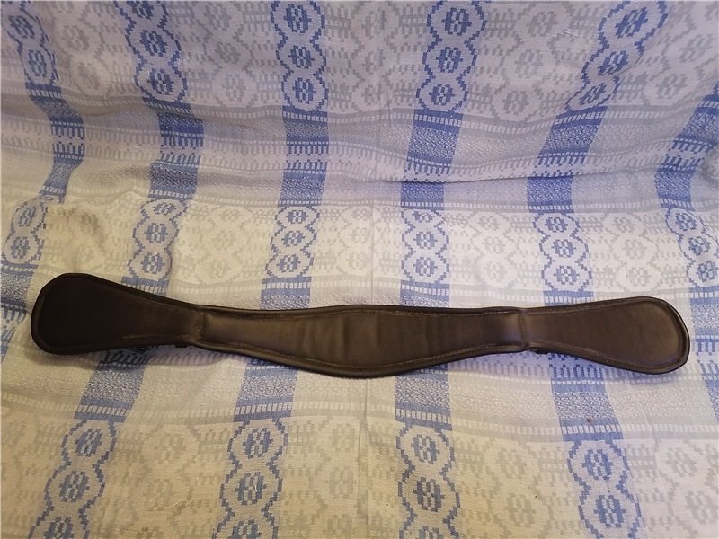 Выездковая кожаная коричневая подпруга, длина 90 см, с обеих сторон резинки. Очень мало б/у, состояние практически новой.