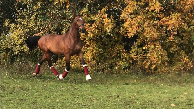 ?Перспективная в выездку молодая лошадь. Правильно сложен, обладает качественными 3- мя аллюрами, прекрасно сбалансирован, гибкий и эластичный от природы.