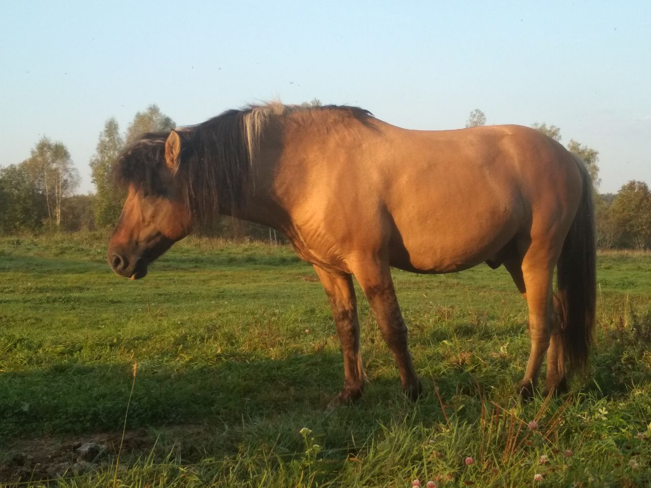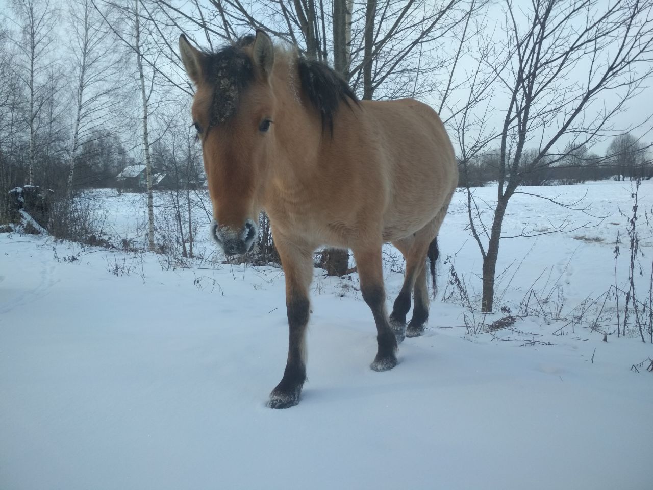 В холке примерно 140 см. Прекрасно держит тело на подножном корме. Ручная, любопытная , человека уважает, активно сотрудничает, оповожена. Находится в Ярославской области.