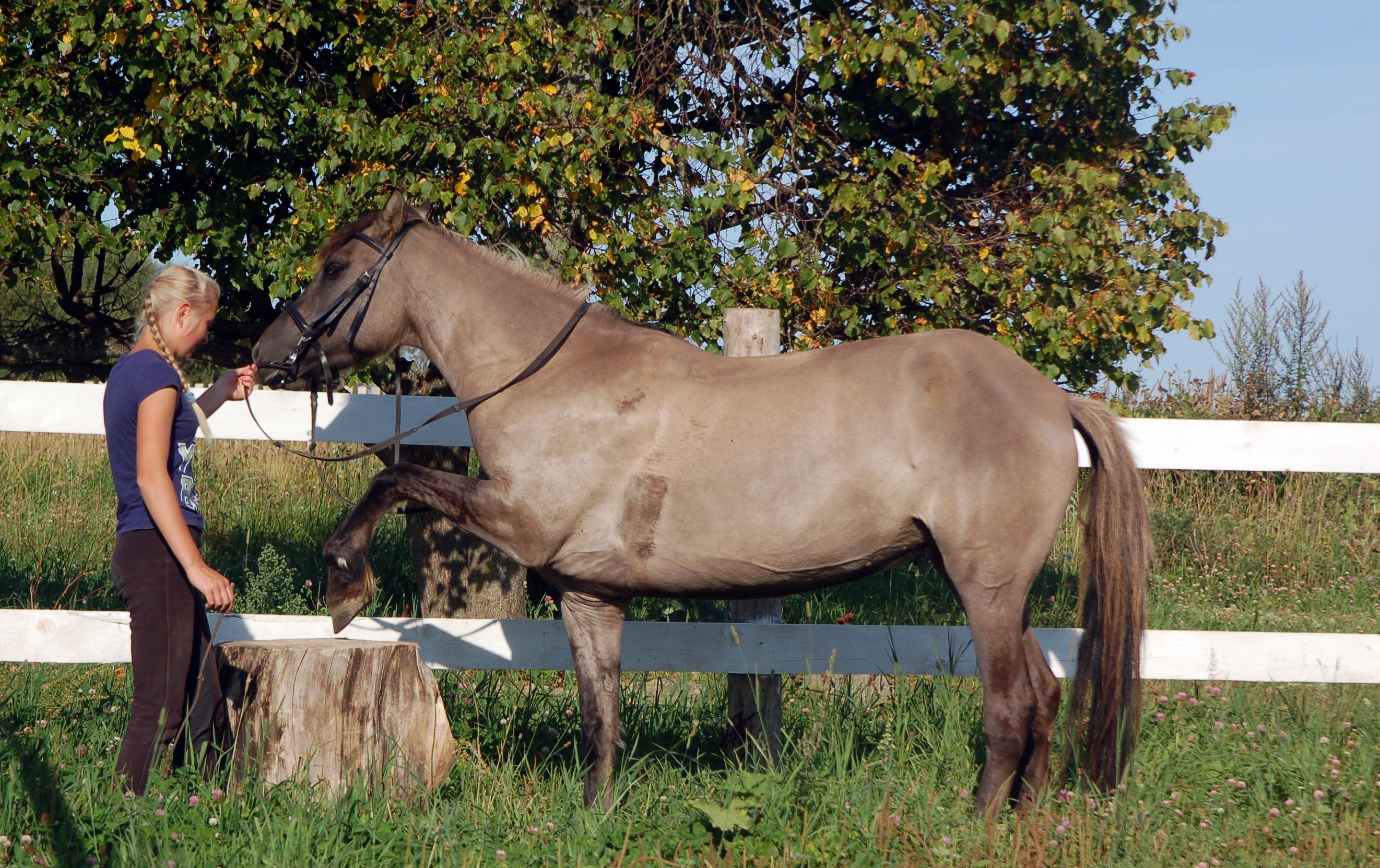 Большинство наших копытных уже умеет вставать на тумбу ( без всадника, и под всадником ), синхронно передвигаться разными аллюрами, выполнять остановки и развороты, а так же - ложиться по команде.