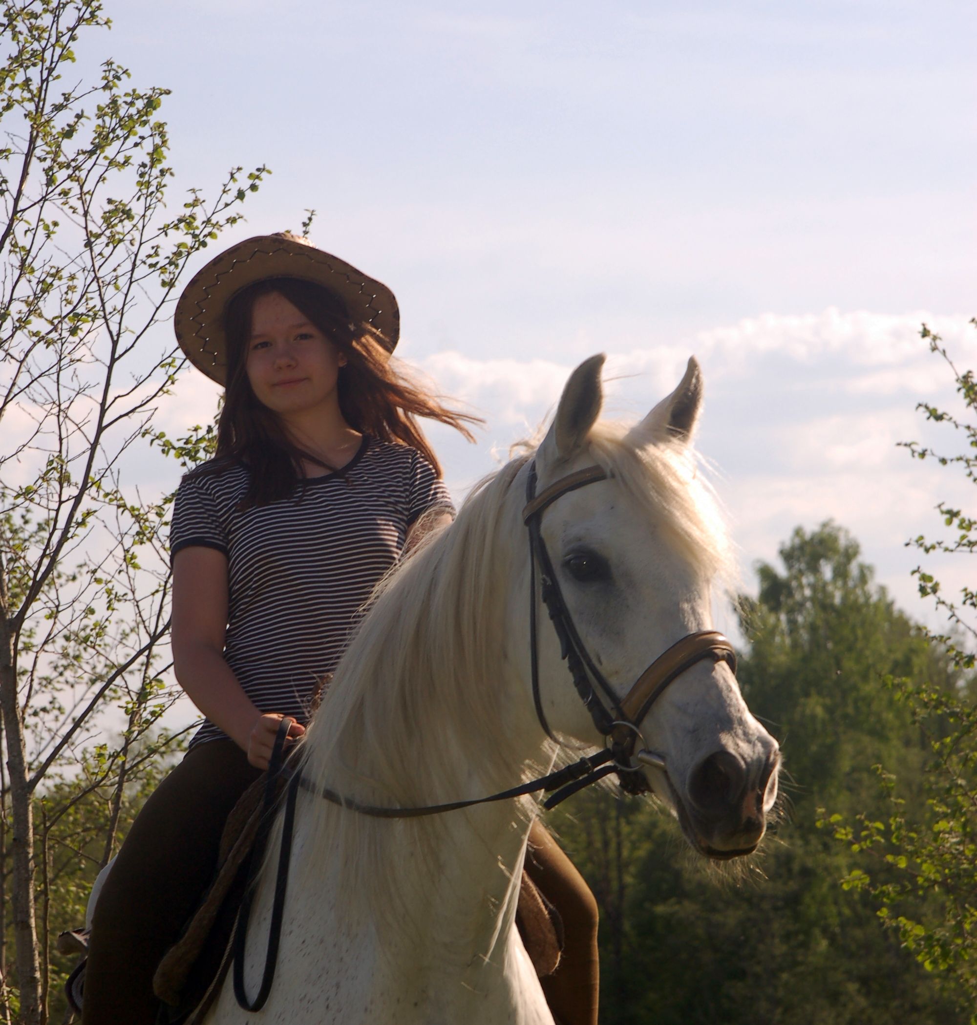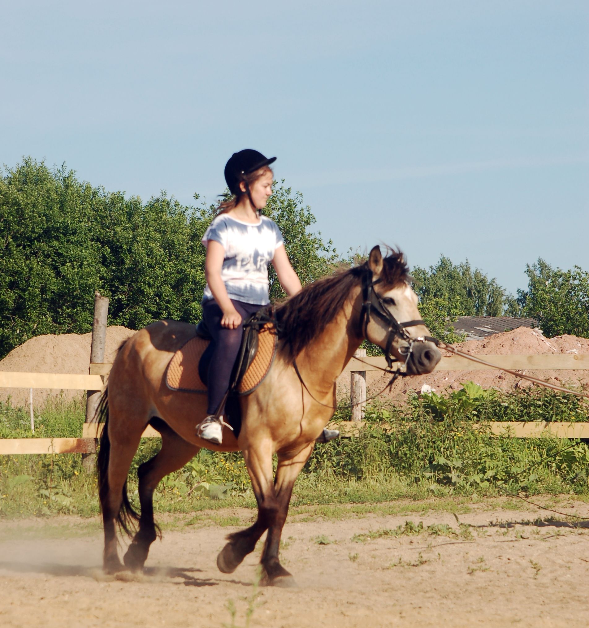 Марина в восторге. До этого даже просто сесть на лошадь побаивалась и отказывалась. А тут прямо сразу героически в поля))