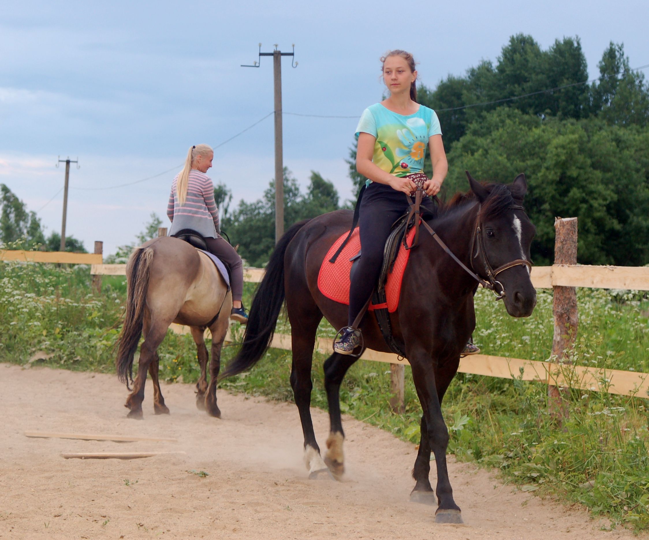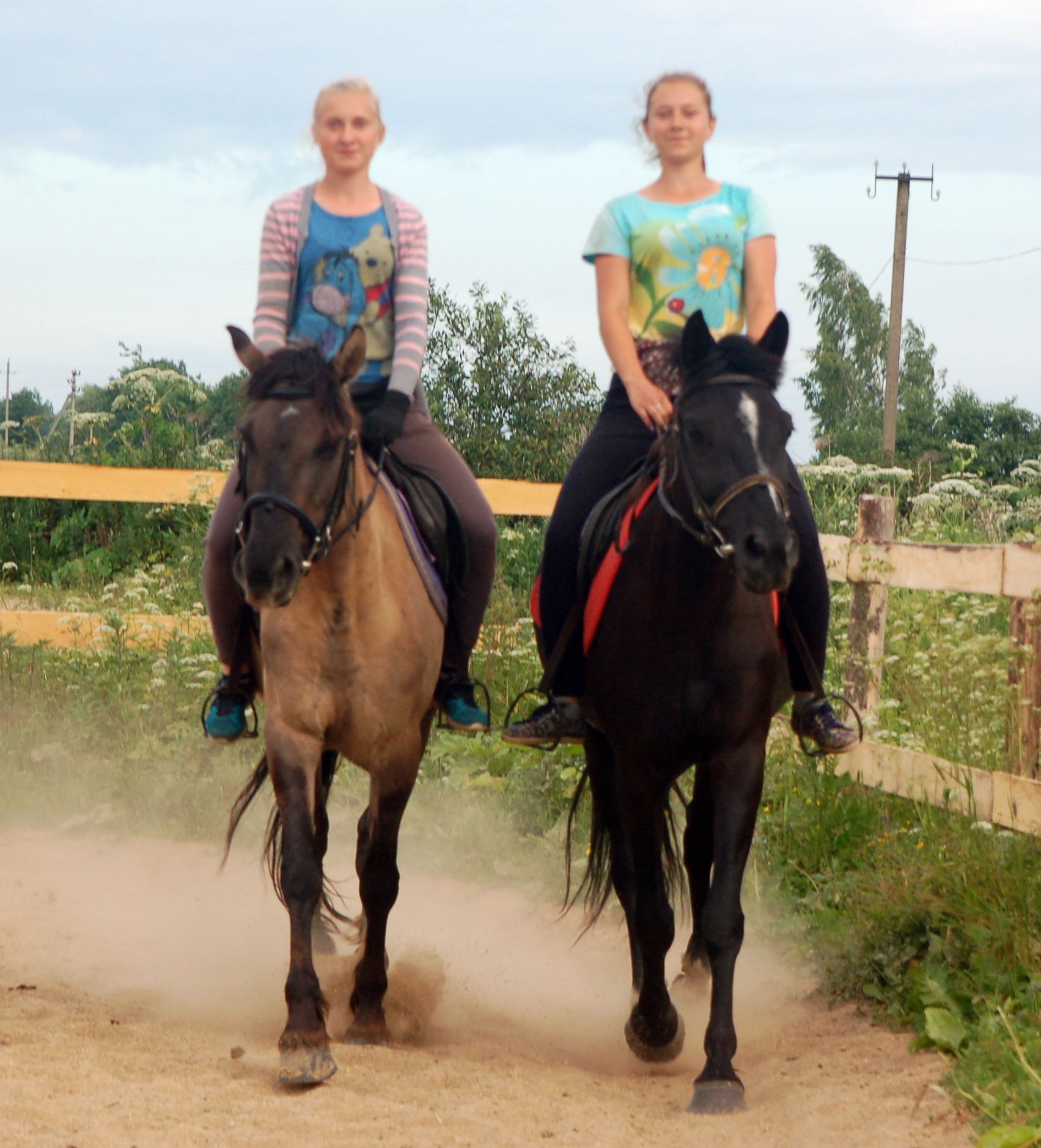 Девочки держались молодцами: и Маша, которой приходилось постоянно притормаживать активную Рузу, и Лиза, которая была у нас год назад и с тех пор не садилась в седло, и Таня, которая в очередной раз доказала, что она сильный всадник, усидев на коварной Грозе, устроившей небольшое родео, и Аня, которая впервые поехала на Кенди и смогла легко найти с ней общий язык, и Надежда, сражавшаяся с блондинкой Ормой за пристойную рысь, а не скачки.
