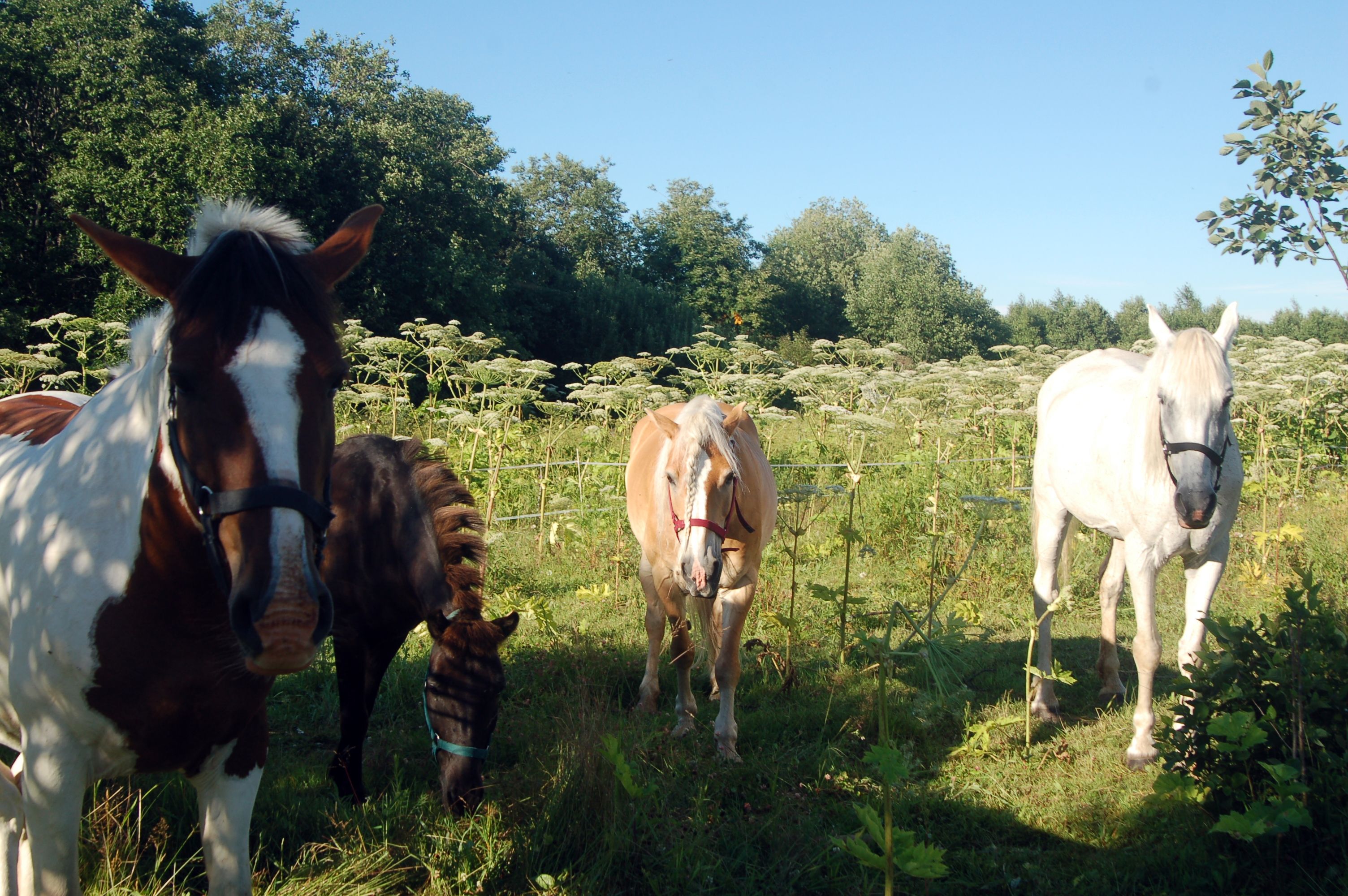 Для расширения границ выпаса было решено натянуть ленту электропастуха по краю оврага. Эта часть поля буйно поросла огромными борщевиками, вперемешку с прочей, вполне мирной и съедобной, растительностью. Прокладывая путь через дикие заросли и увлечённо ломая зловредные сорняки, надо быть особенно осторожным...