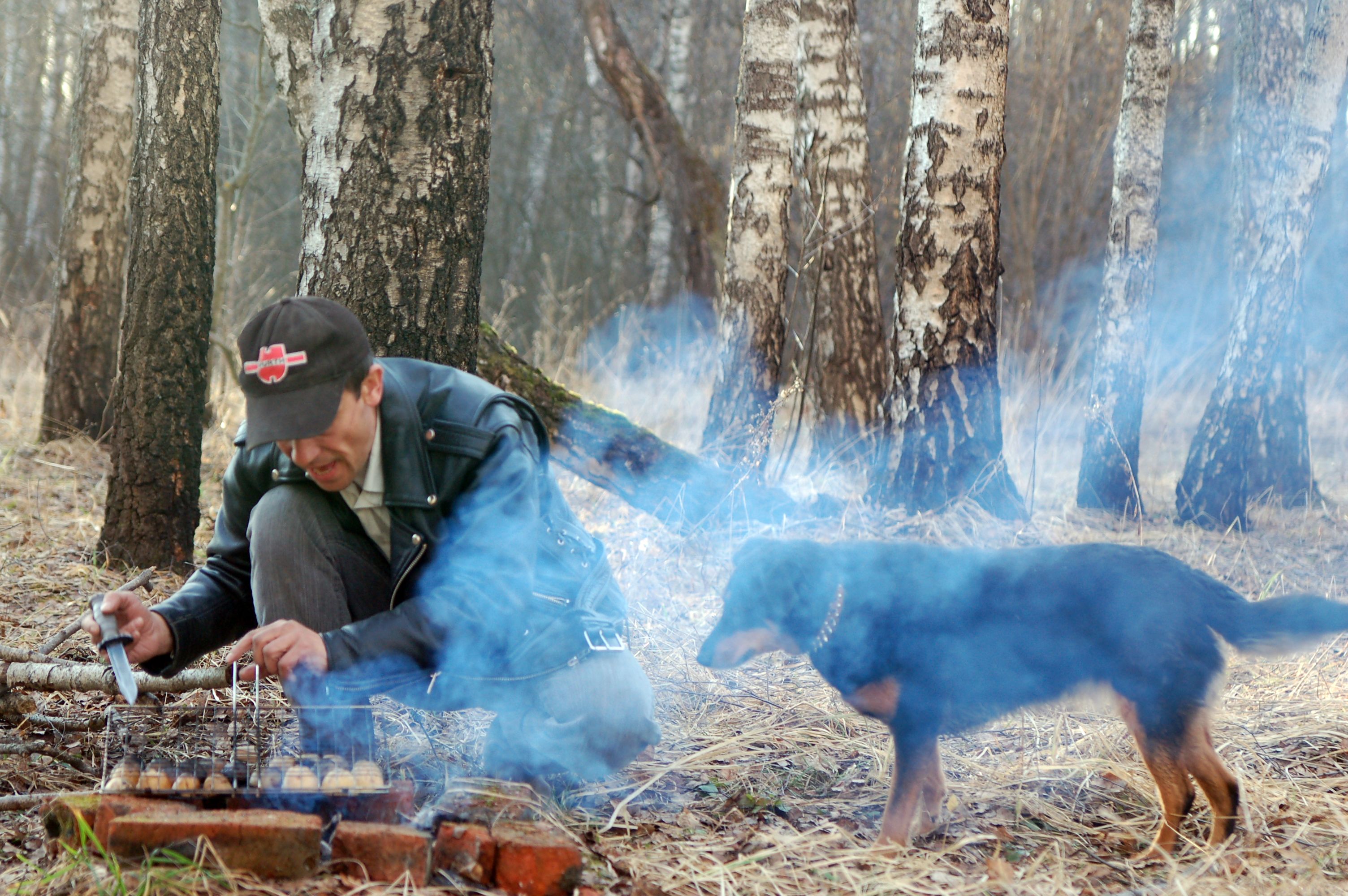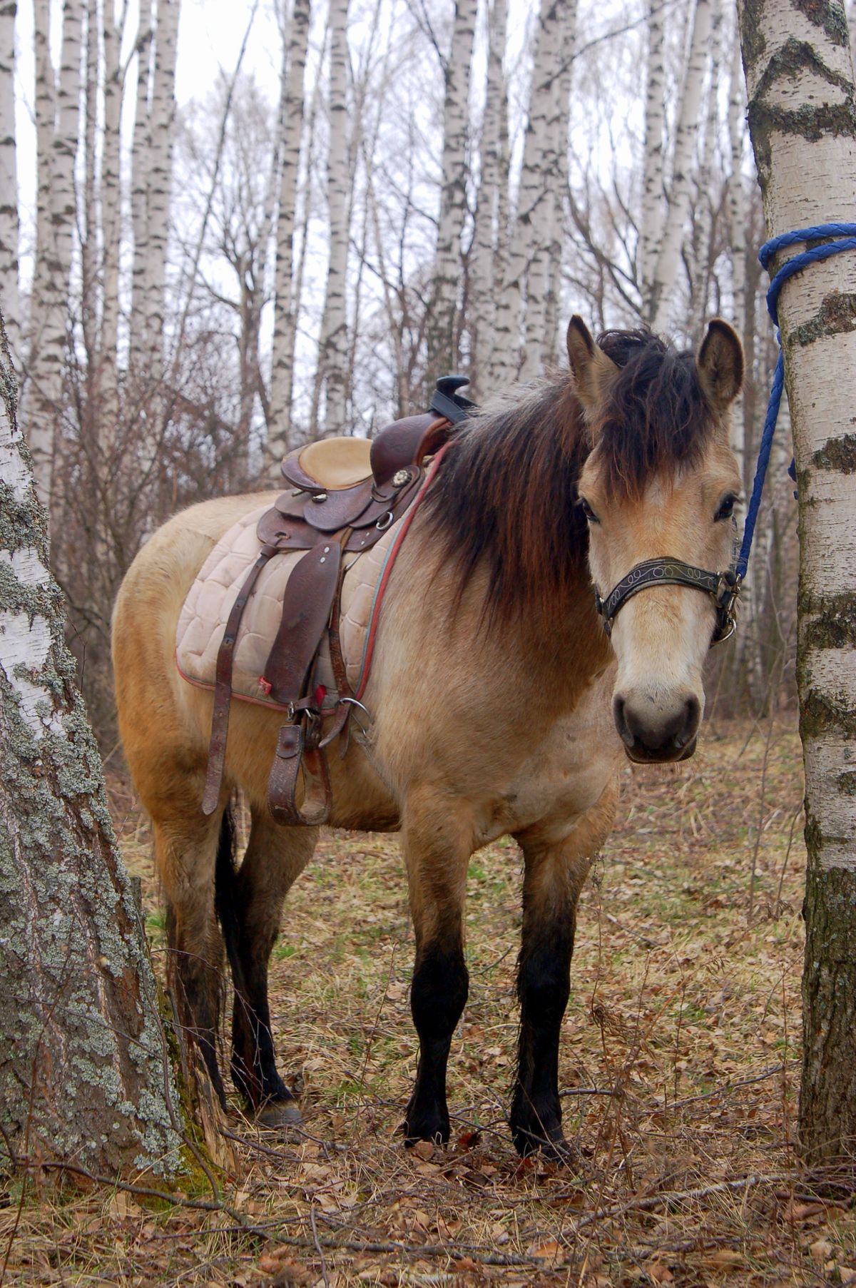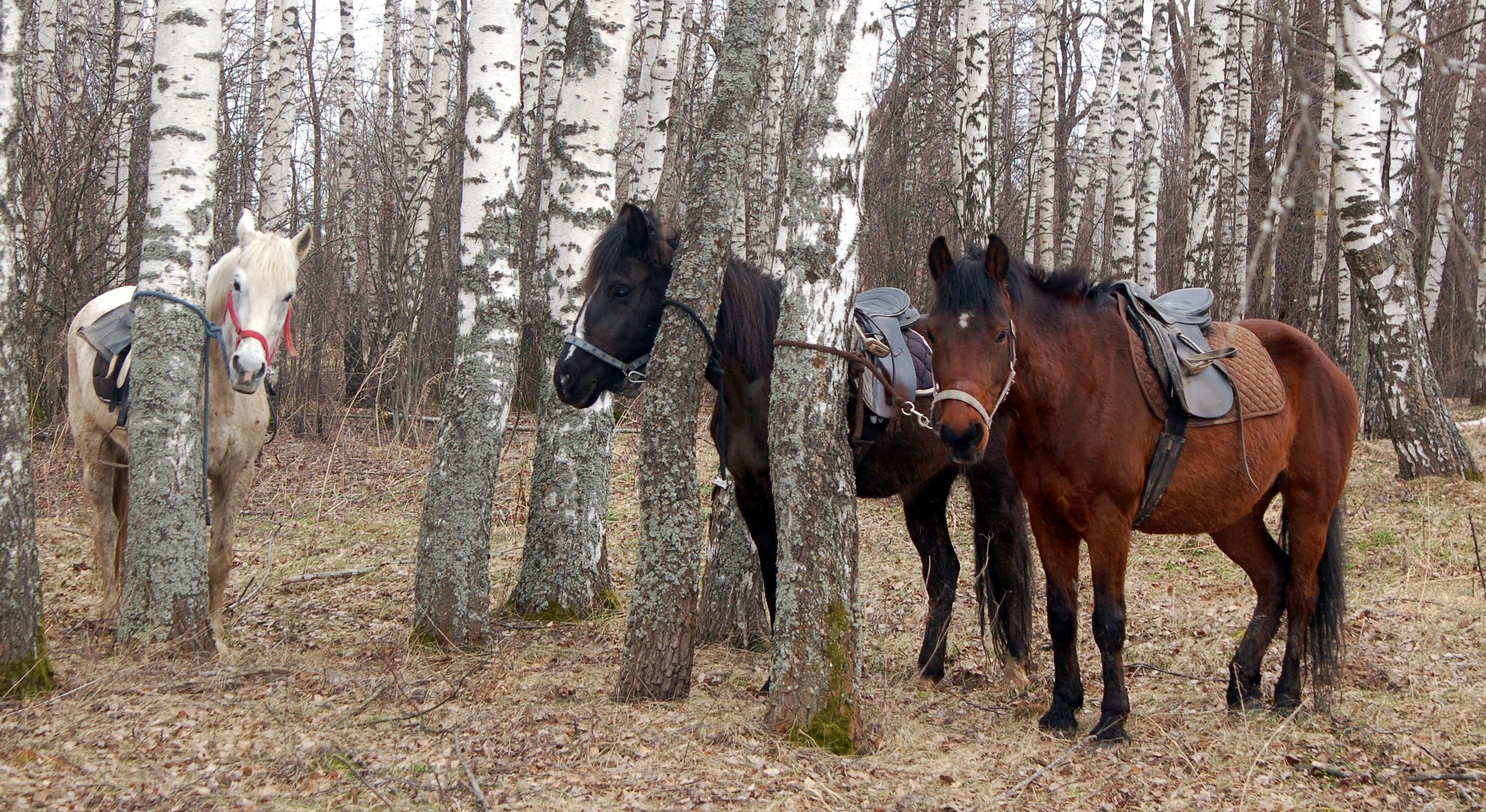 Как прекрасно, что наша любимая берёзовая роща встретила нас как старых и любимых друзей - комаров нет, грунт сухой, дорога проходимая, любимые брёвна для дуракаваляния тоже на месте. И вот, в кострище уже пылает огонь, лошадки мирно щиплют прошлогоднюю листву, а предзакатное солнышко ласково заглядывает на нашу уютную полянку.