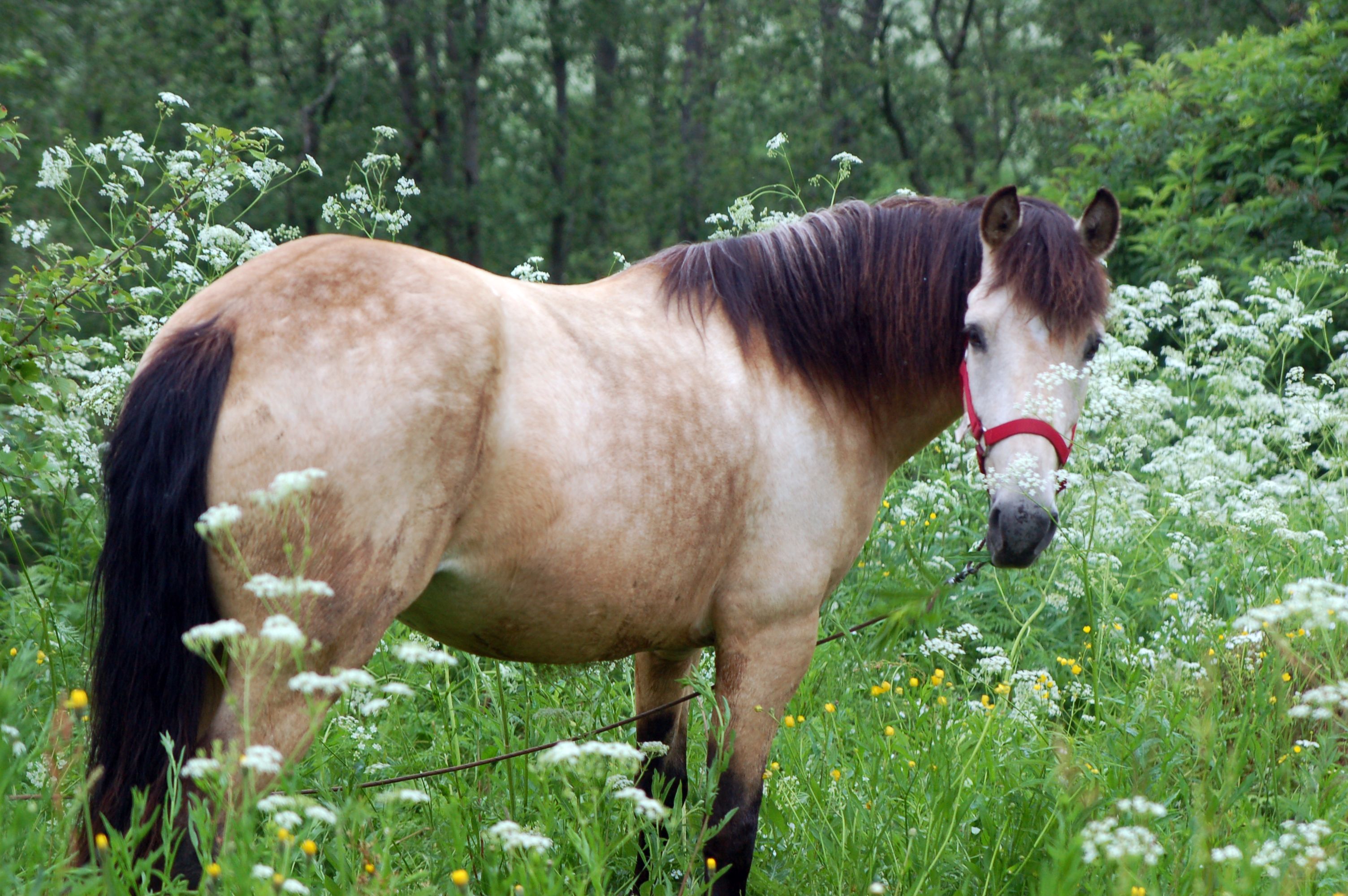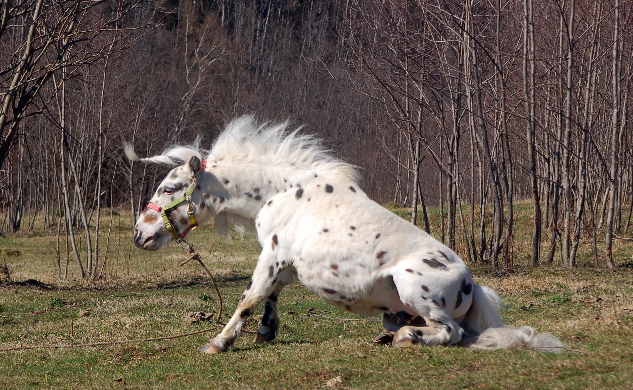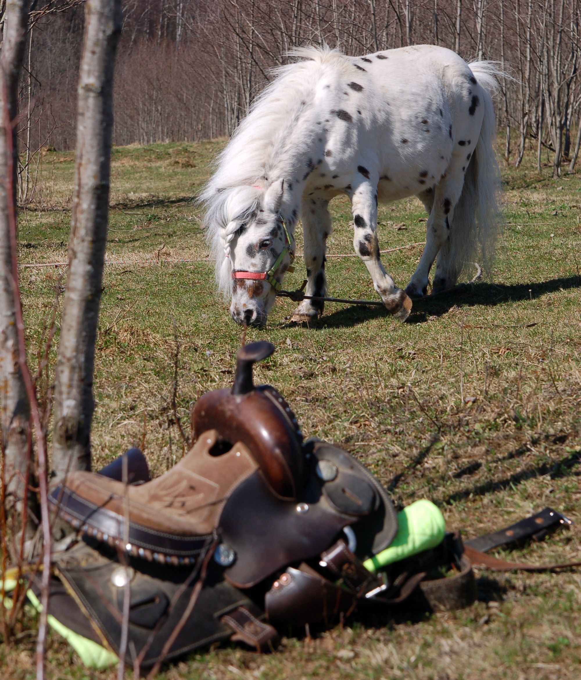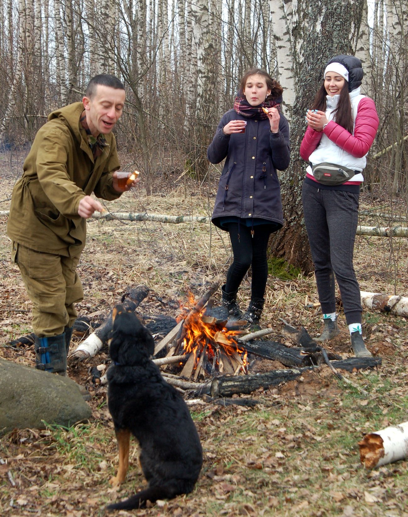 Как прекрасно, что наша любимая берёзовая роща встретила нас как старых и любимых друзей - комаров нет, грунт сухой, дорога проходимая, любимые брёвна для дуракаваляния тоже на месте. И вот, в кострище уже пылает огонь, лошадки мирно щиплют прошлогоднюю листву, а предзакатное солнышко ласково заглядывает на нашу уютную полянку.