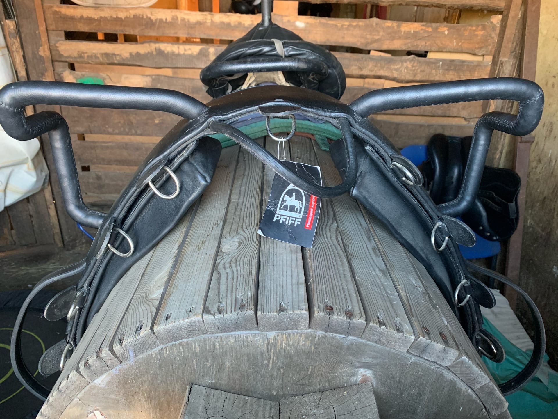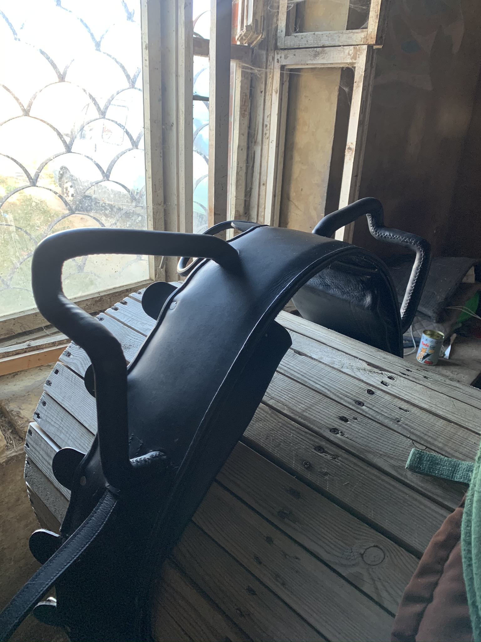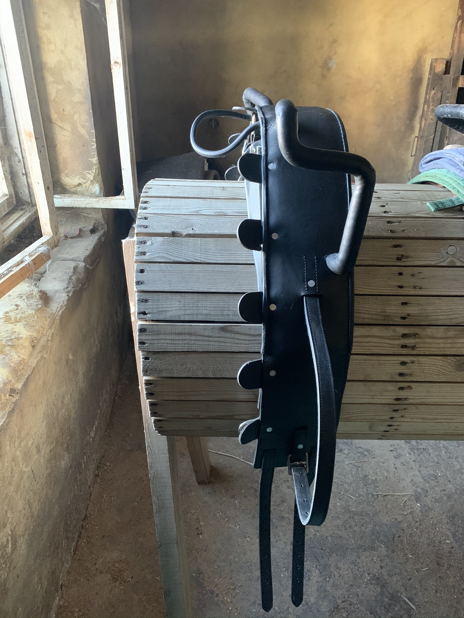 на крупную широкую лошадь. Очень плотные и крепкие подушки, которые на липучках, можно подгонять под лошадь. Ручки выполнены лесенкой. 12 колец для доп амуниции. Абсолютно целая. Хранится в тёплом амуничнике.