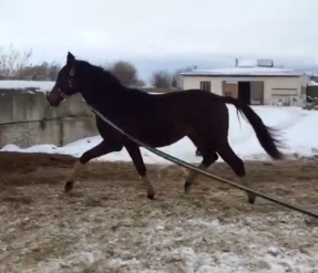 Конь мимишечка, уже надо начинать двигать, потому что за время зимы расслабление и ритм мы наработали. Теперь никакой зажатой спины и задранной башки, но тюлюп-тюлюп