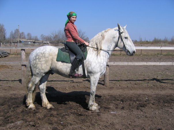 Сва, жаль, что меня не сохранилось фоток Монаховой родственницы, отчалившей в Новгород. Рысаков там, ИМХО, нет. Вот почему ИМХО такое: кобыла и Монах от одной и той же мамы, только с разными папами - Монах от першерона, дочь от неизвестного папы (мне говорили, что дома ее звали Машка), очень широкая, короткая (и спина и шея) с толстыми ногами, а морда с широким лбом и относительно узким храпом - как у Моньки. Дочь была полностью какой то песочной - хвост и грива светлее, на ногах высокие щетки. Как сказал Марат, когда я на днях задала ему вопрос о возможности прилития к Монаху "верховушки" - он ответил, что "... легких лошадей в Богородицах не держат, все таки деревня."