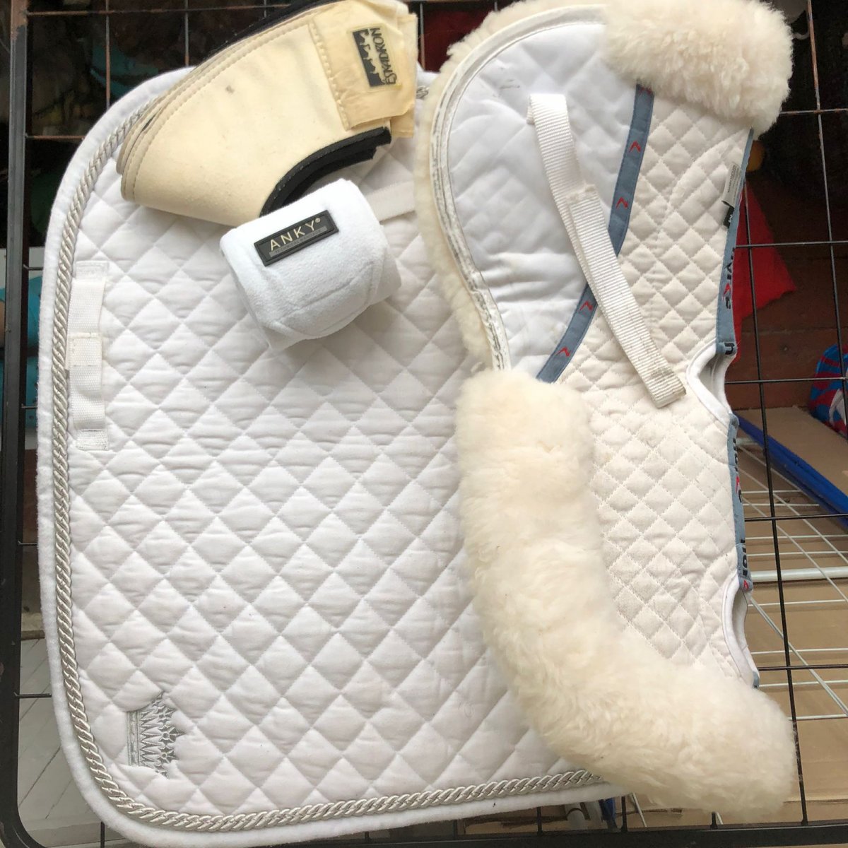 1. Набор стартовый: мех натуральный Horze, бинты Anke (стан), вальтрап универсальный Horze, колокольчики эскадрон в подарок. Мех плотный, толстый. Все вещи в отличном состоянии, б/у раза 2-3 на старты. Цена 6000 тр, можно по отдельности (цены уточнять)