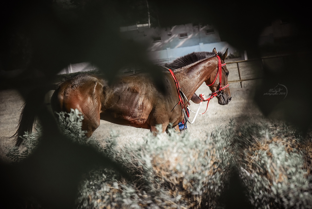 - есть "дыхательный" уличный денник с шелтером 7х7,5 м, грунт песок;