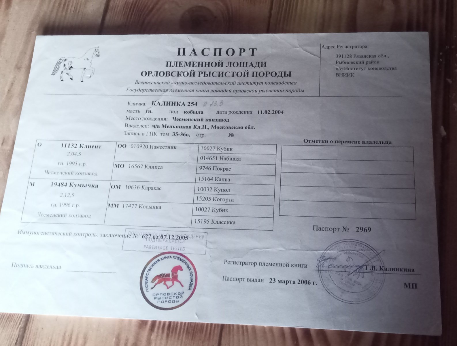 Это чистокровный Орловский рысак Чесменского завода 19-ти лет. Верховая, учёная. Занимались на ней джигитовкой, иппотерапией, конными прогулками. На заводе принесла 4 жеребят, затем отдали в частные руки. Помоталась несколько лет, попала ко мне. Принесла одного жеребёнка, здорового, красивого. Теперь одна стоит. Дети не ездят, а мне все больше некогда. Лет пять уже у меня. Всё умеет, всё знает. Не боится ни инструмента, ни техники, ни процедур, ни пакетов. Не кидается на людей, не пинается, не кусается. Спокойно живёт с другими животными.