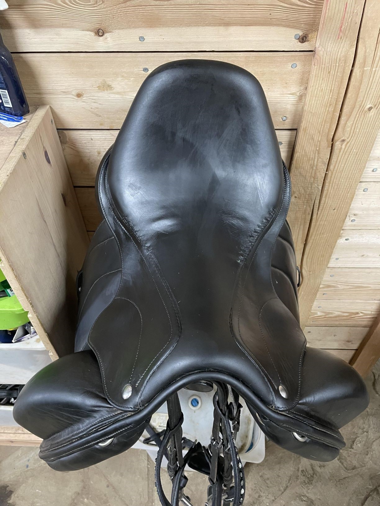 Продам б/у выездковое седло белорусское (под Антарес). Имеются косметические дефекты (см. фото). Территориально КСК Отрада. Примерка под полный залог. 30 т.р.