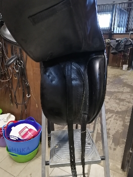 Продам выездковое седло б\у в отличном состоянии. 17.5 по всаднику, 32 по лошади на среднюю холку и среднюю спину. Производство Ратомка Гермида модель диамант, Белорусь. Седло использовалась редко, так как основное направление конкур, регулярно промазывалось.