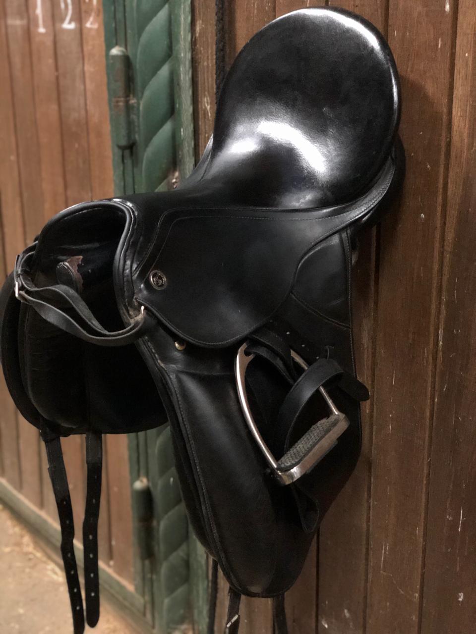 Выездковое седло Kieffer Lusitano. В хорошем состоянии. Размер по всаднику 17,5, по лошади на средне широкую 33. Подойдет для высокой холки. Седло глубокое, ровное. Внешние упоры. Приструги целые. Продается только седло, без стремян, подпруги. КРАСНОДАР, ВОЗМОЖЕН ПЕРЕСЫЛ.