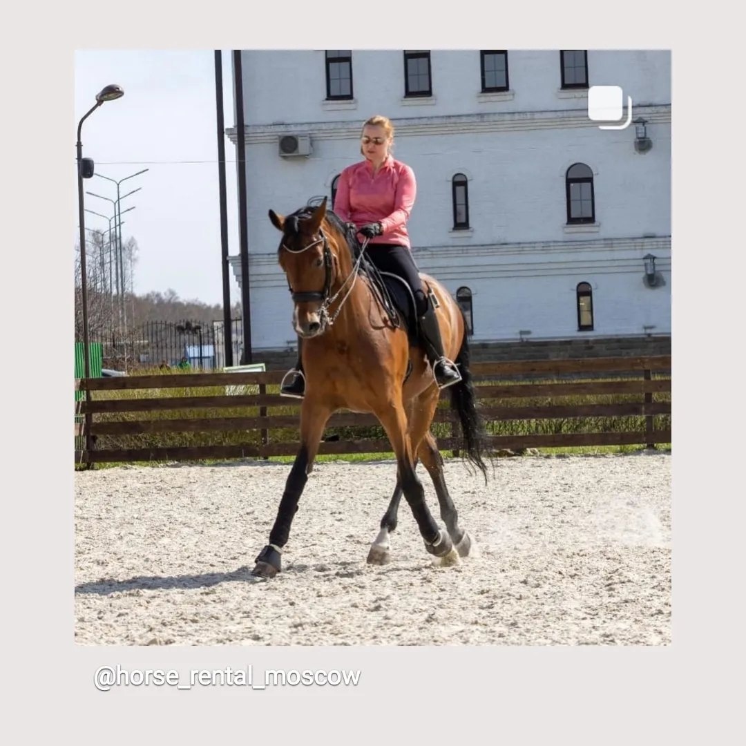 Так же есть более бюджетный вариант аренды. Мерин уровня юношеских езд, имеет опыт выступлений по паралимпийским ездам, спокойно возит детей и неуверенных всадников. Стоит в КК Орлофф