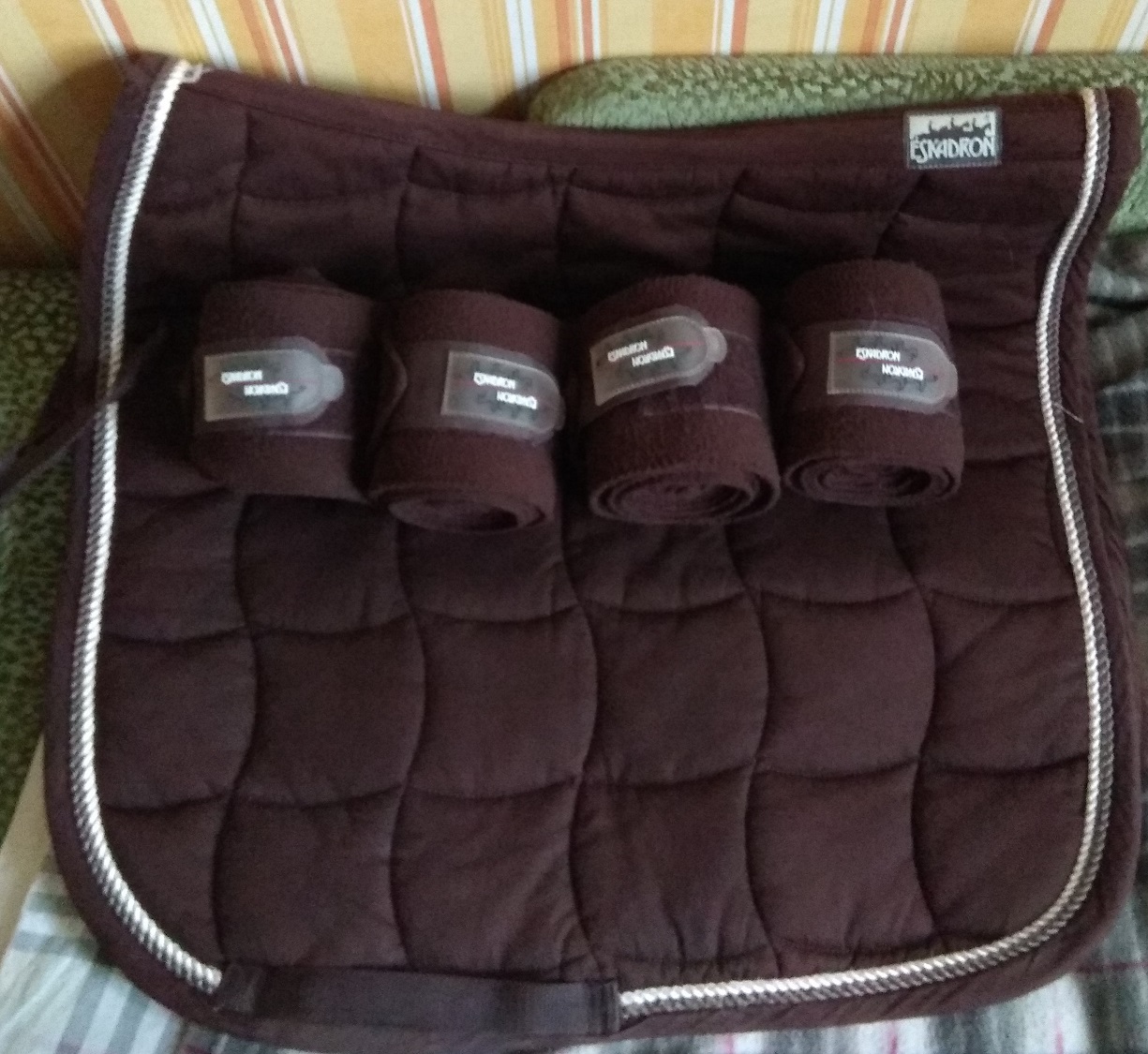 1. Вальтрап выездковый коричневй (хлопок/ подклад тоже хлопок) Эскадрон в комплекте с бинтами. 2000