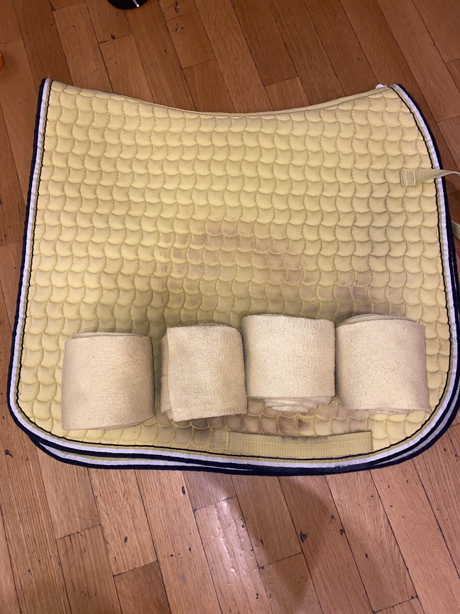 1) желтый выездковый вальтрап , в хорошем состоянии , Eskadron , возможна продажа с желтыми бинтами.