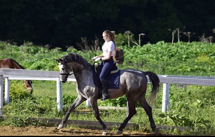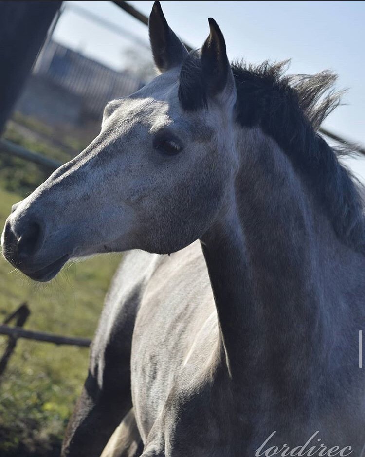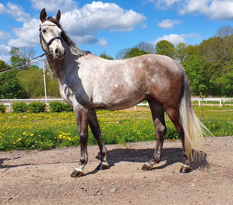 Очень душевный серый конь на хороших движениях. Требует большого внимания от человека.