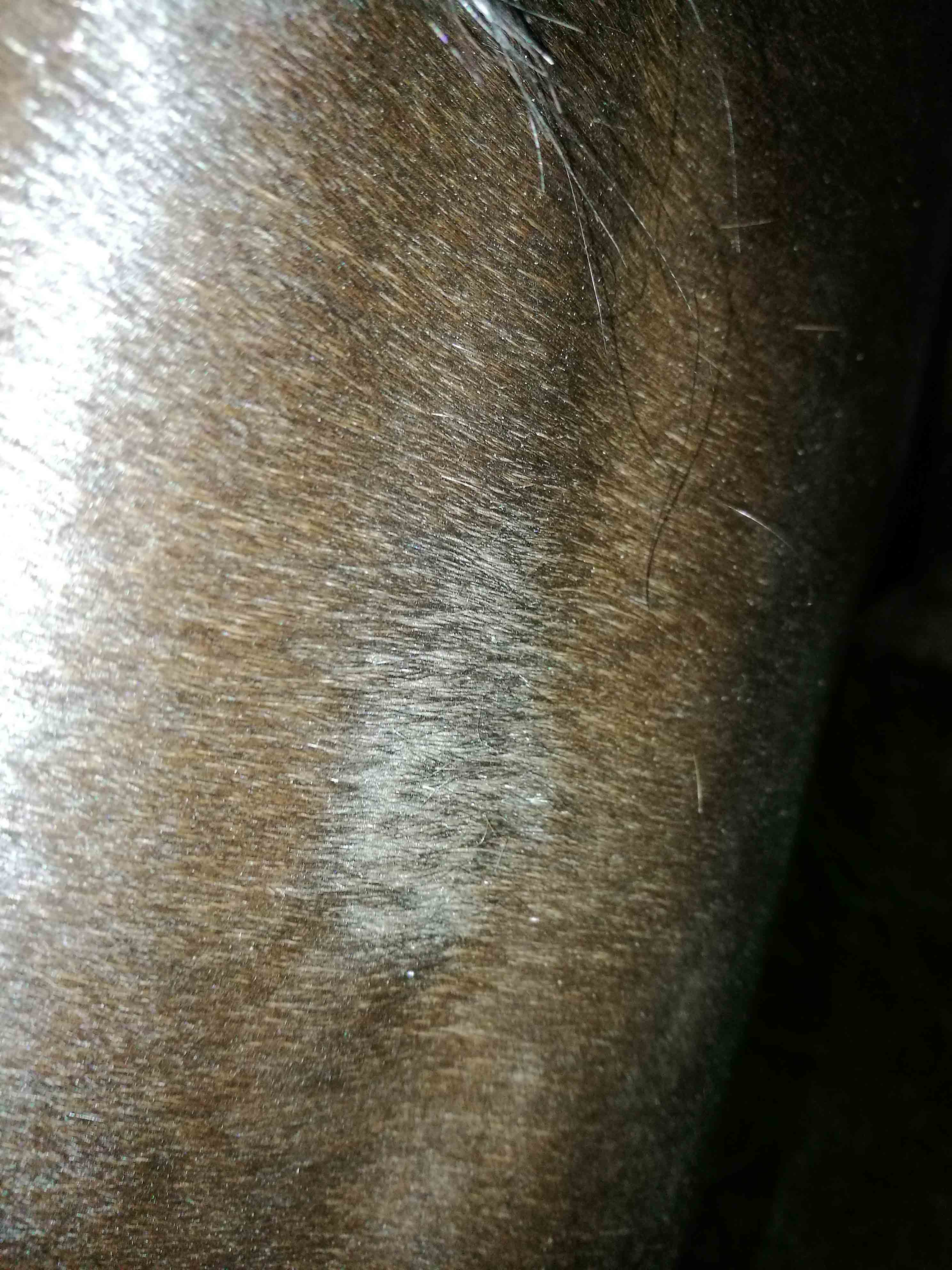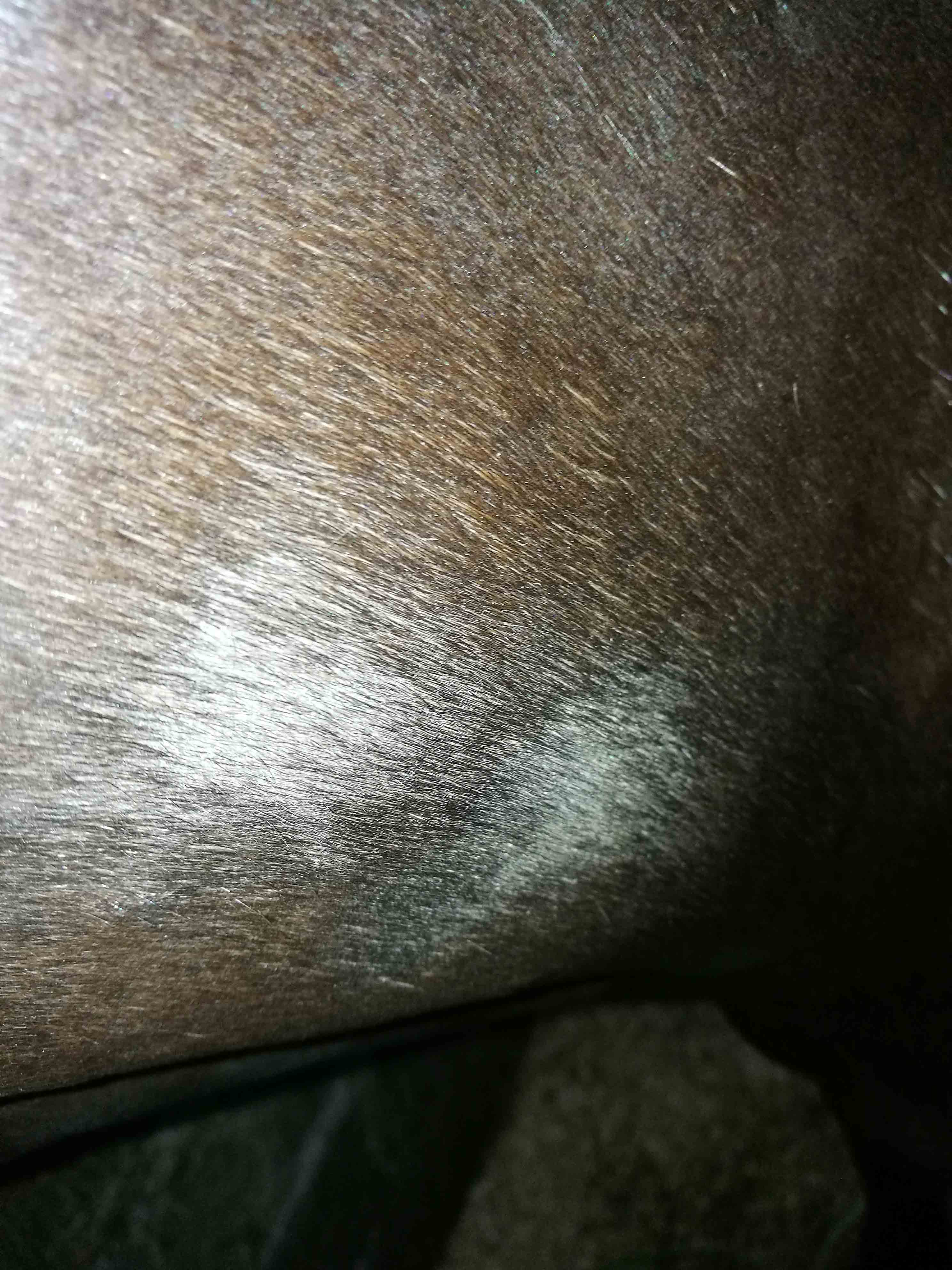 На первом фото залысина в области крупа, на остальных - в области шеи под гривой. Не уверен, что повреждение на первом фото связано с остальными, т.к. оно появилось достаточно давно, мазал заживляющей мазью, не помогает. То, что на остальных 4 фото заметил недавно.