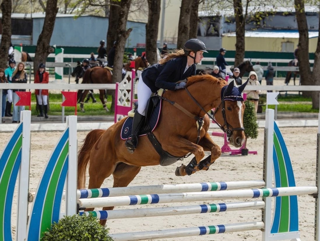 Старты - маршруты до 115 см. Дома - одиночные до 135 см. Также знает боковые элементы. Душевная, слушает всадника, не играет. В руках ходит хвостиком.