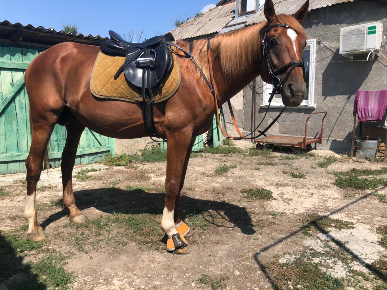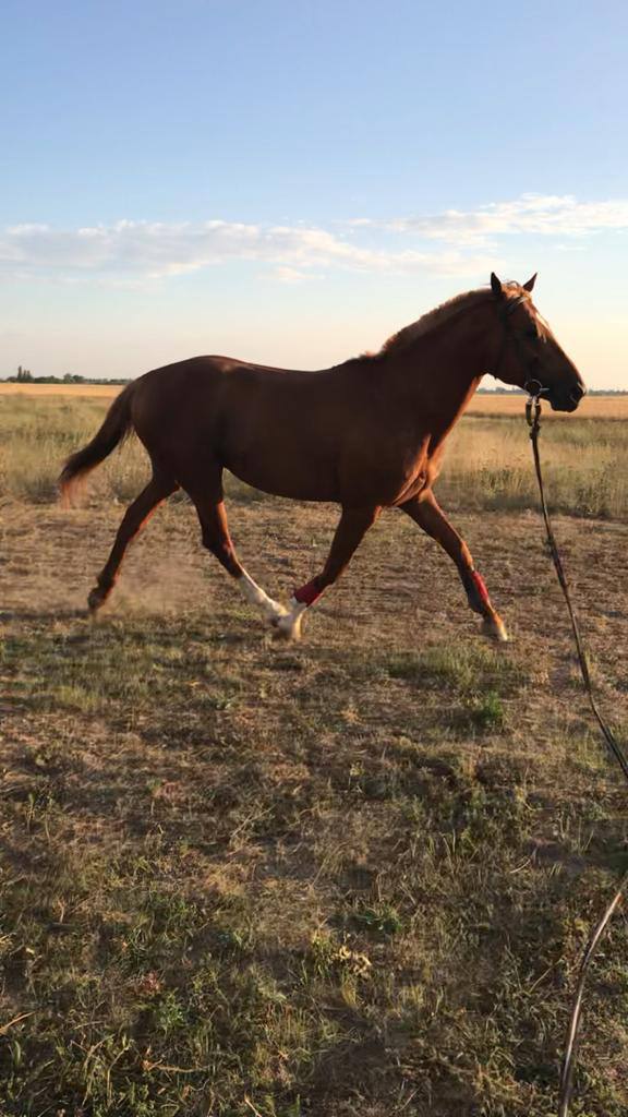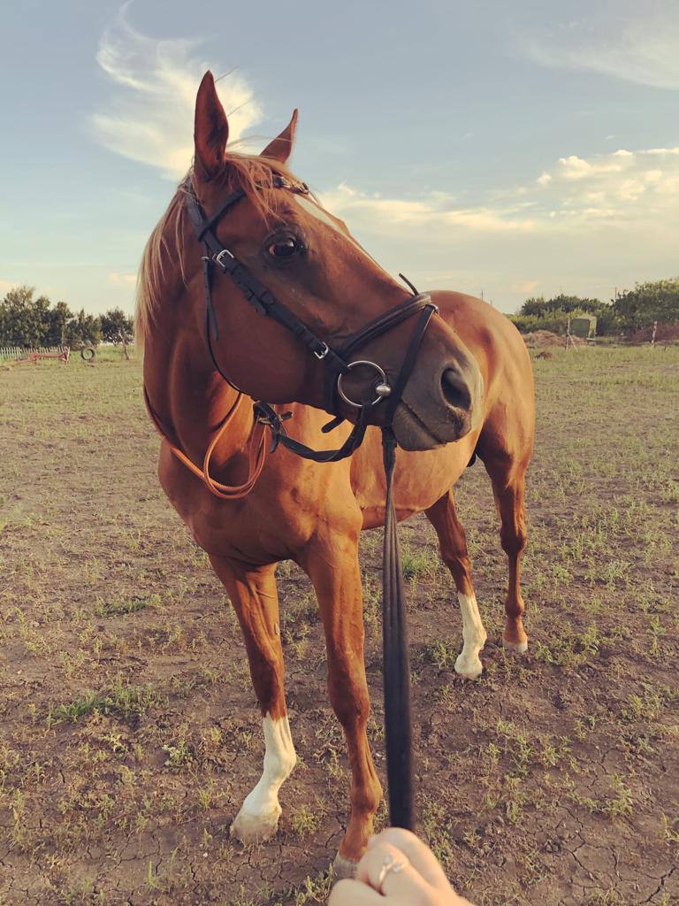 Есть нюанс по здоровью (старая травма задней ноги), нагрузки шаг-рысь-галоп. Прыгать может, но не желательно. Документы: паспорт спортивной и прогулочной лошади, паспорт ФКСР, вет. паспорт