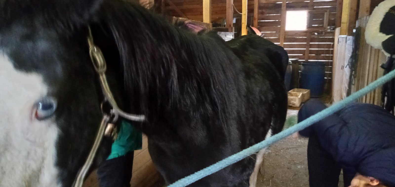 В деннике лошадь отскочила от нас, вжалась в стену и подняла заднюю ногу. Так она будет делать ещё два месяца ежедневно.