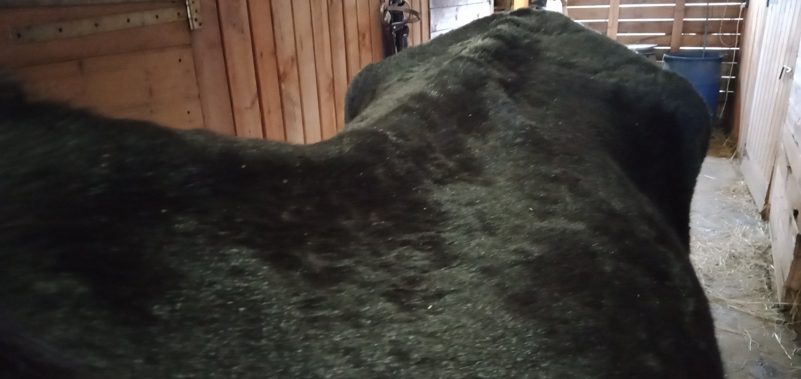 Кроме того, она ещё не закрыла хребет до конца, поэтому приходится под классическое седло брать вестерн-пад(( Так хоть как-то получается работать.