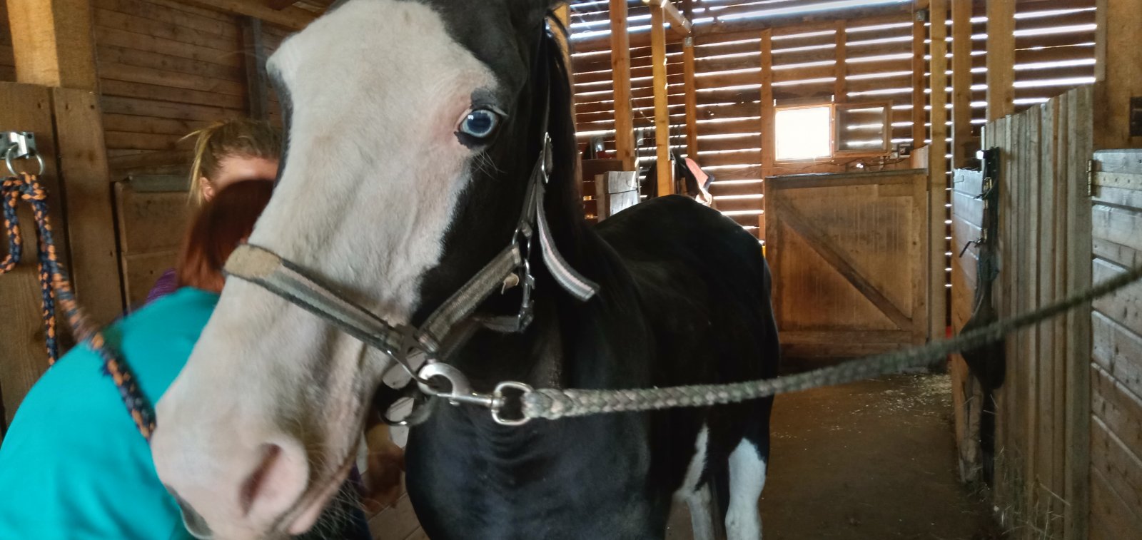 Эту лошадь я увидела в прошлом октябре на фотографии группы Пензенской бойни ВКонтакте. Лошадь с фотографии смотрела мне прямо в душу яркими голубыми глазами. Цена у нее была вполне приемлемая, и я сразу же написала организаторам. Мне сообщили, что лошадь уже продана.