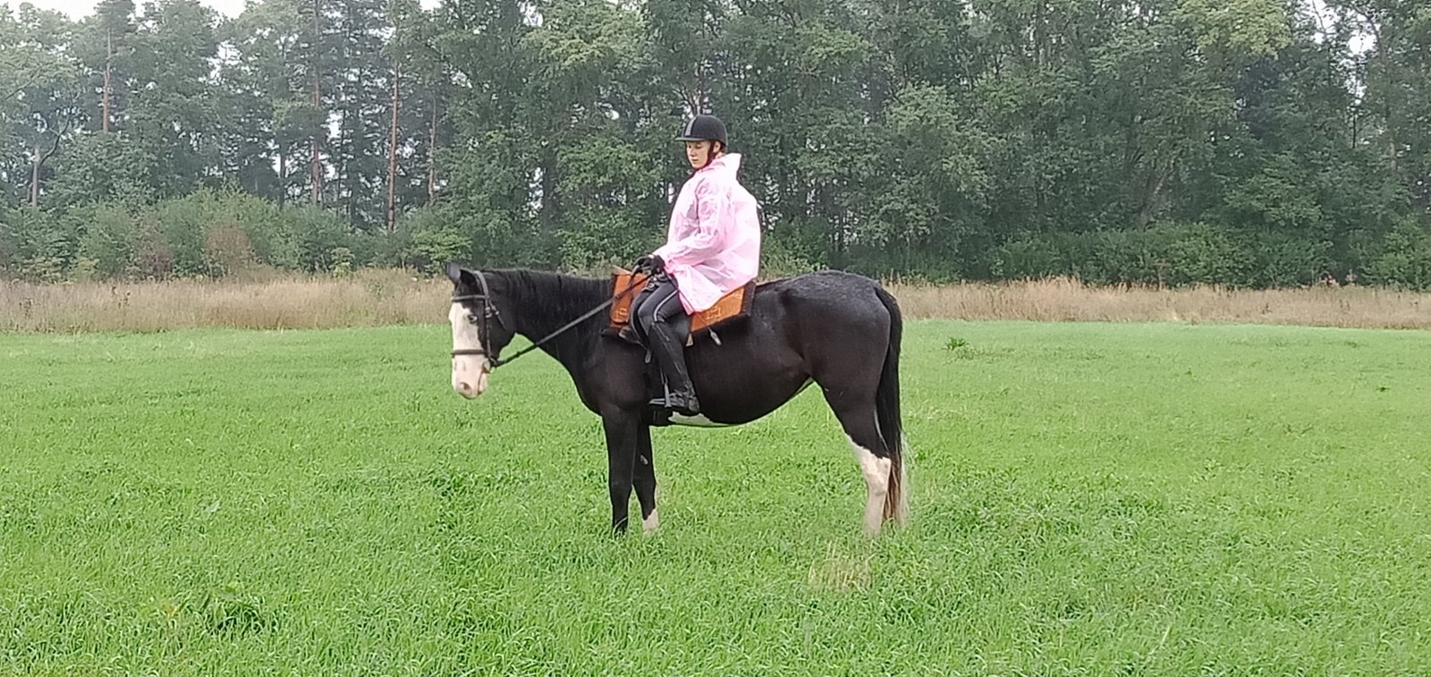 Сын первый раз после перелома поехал на Булке, так что у меня наконец есть фото со мной верхом) А то вечно я всех снимаю, а меня нет.