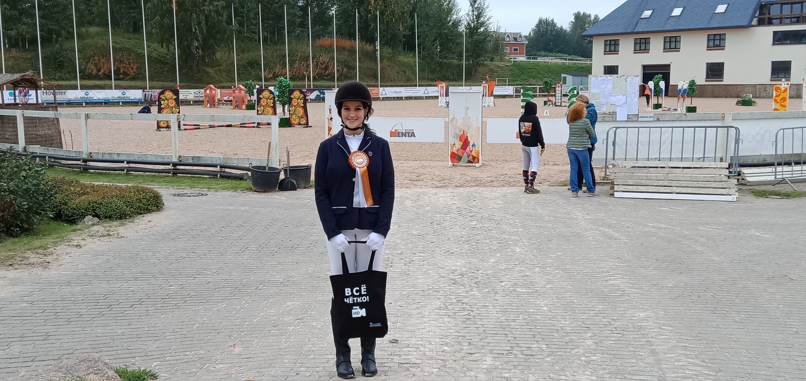 Странные получились старты. С одной стороны, нахватали штрафов за повалы и закидки столько, что ни разу не привозили. С другой - рабочие задачи были выполнены. Булку только начали вывозить на большие старты. Алена на ней только начала ехать метр. Вика, тоже на Булке, ещё не научилась отпускать ее на нормальный галоп, закорачивает повод.