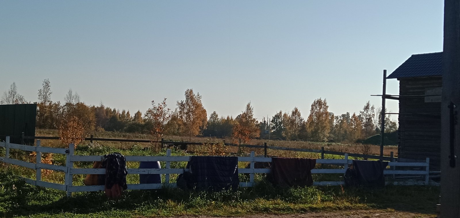 А наша простенькая конюшня на 8 голов начала в вечернем свете выглядеть очень уютно и как-то по-домашнему тепло. Кошки перебрались окончательно ночевать в конюшню, а ещё недавно дрыхли прямо на траве перед крыльцом.