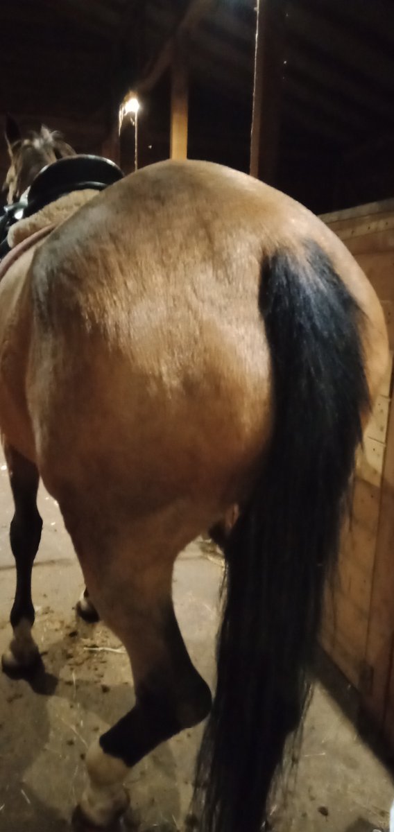 Пани оказалась офигенной) На эту лошадь, как выяснилось, можно посадить полного новичка - и она будет честно работать. Хочешь - шаг, хочешь - рысь. Ничего на манеже не боится, всадника не роняет, честно катает, куда поводом покажут. Не перестаю удивляться, как она оказалась на бойне. Позвоночник ещё до сих пор не совсем закрыт, сильно мышцы были атрофированы, долго восстанавливаются. Но вот что получилось на текущий день: