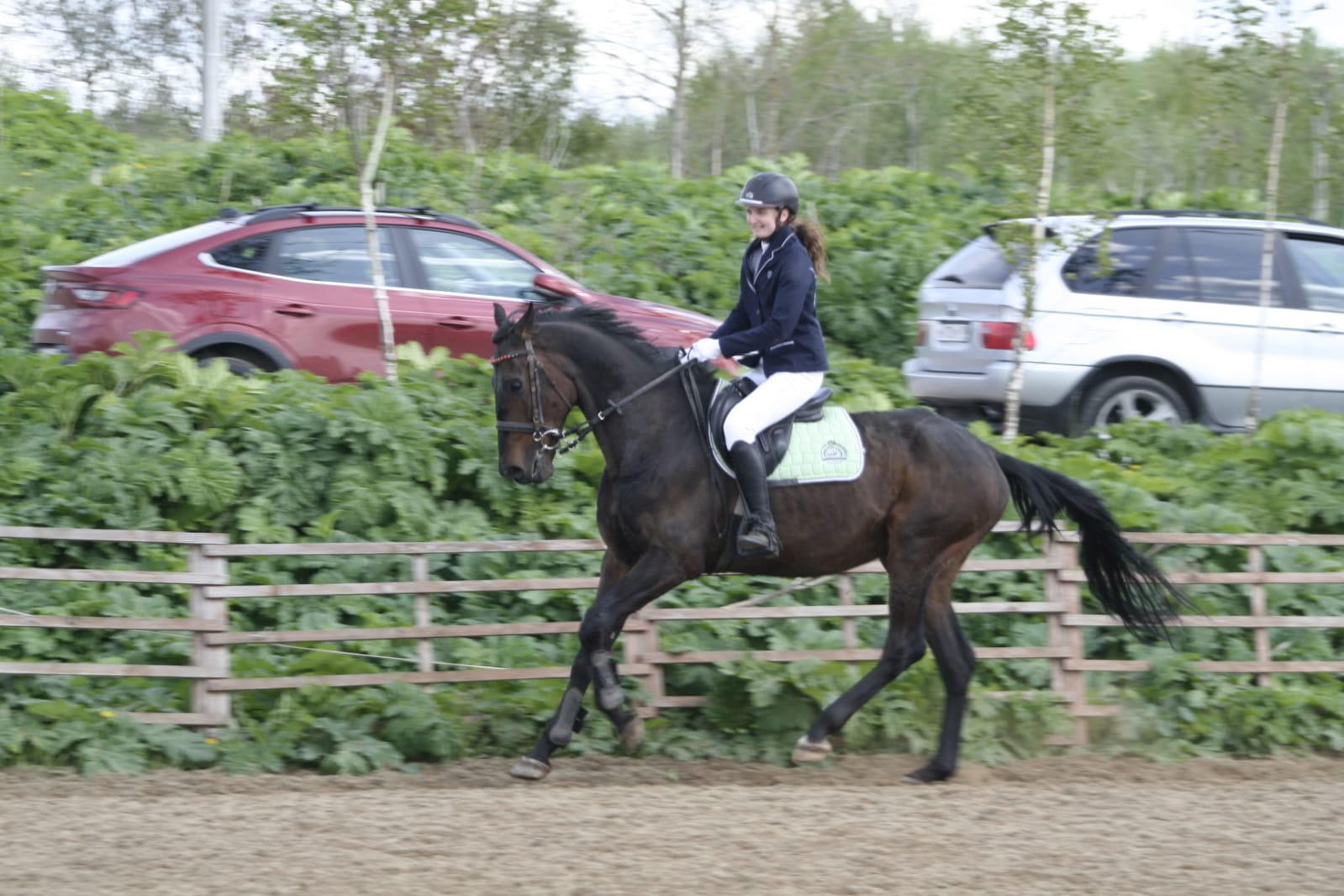 При этом кобыла заезжена, знает прекрасно команды и не отказывается их выполнять. И шагом, и рысью, и галопом работаем, спины делаем, осаживание нормально. Но вот пока с ней очень весело, с огоньком)
