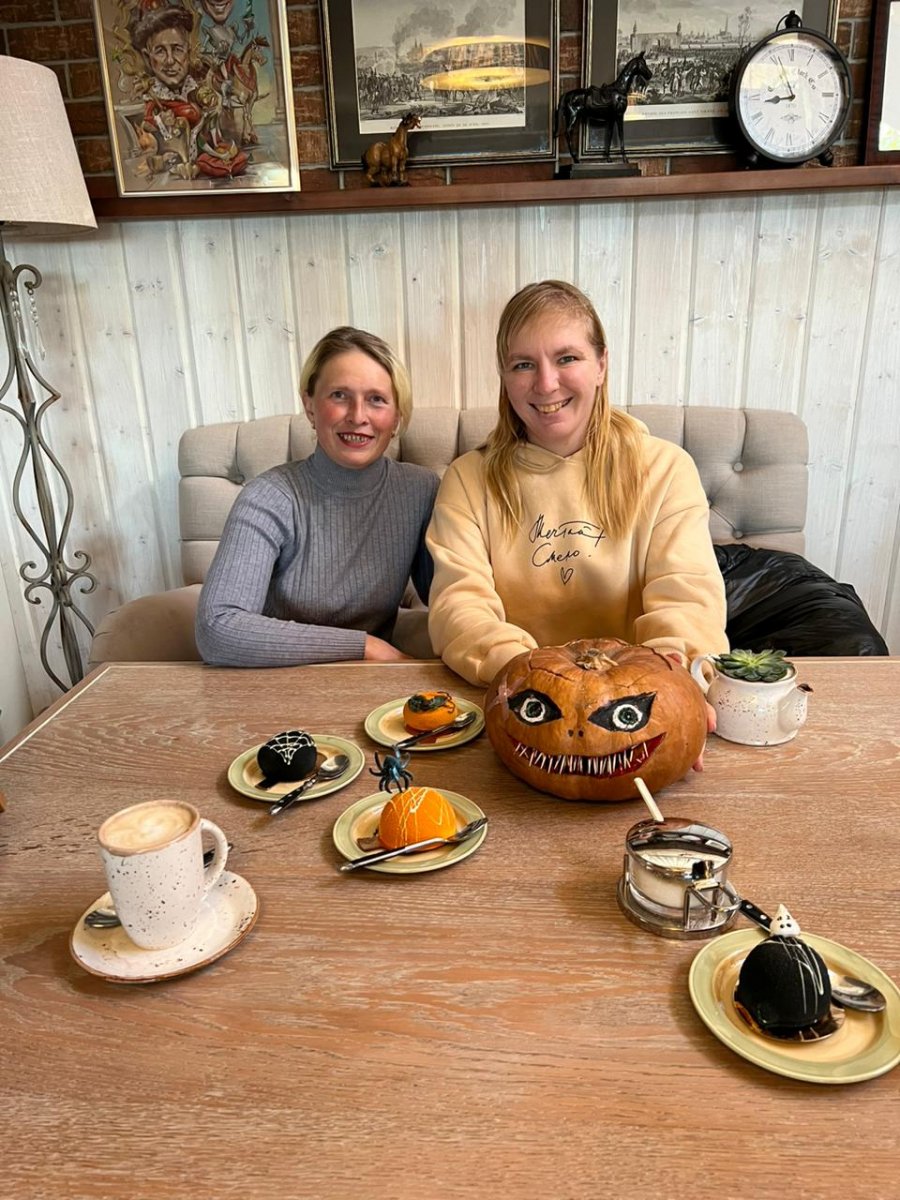 Поэтому мы с девчонками после тренировок рванули в Венту - там приготовили тематические пирожные к празднику - с пауками, привидениями, паутиной и пр.