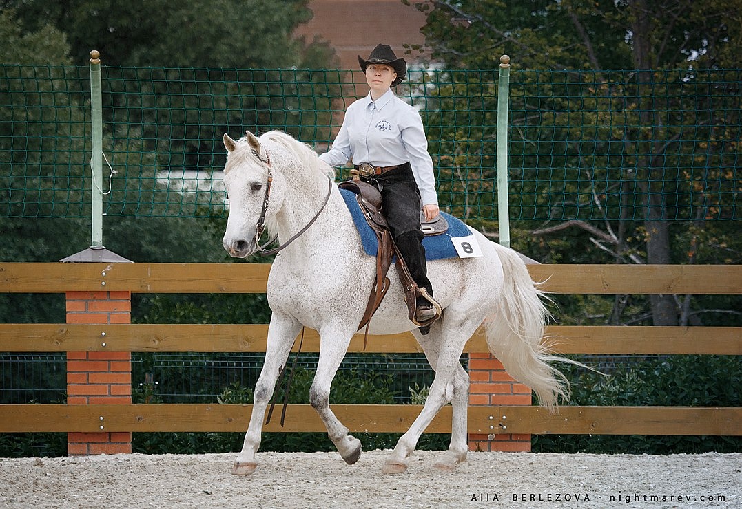 Вестерн хорош тем, что любой - и малый и старый, с любой адекватной на голову лошадью, могут найти для себя направление в вестерн по вкусу. Помимо распиаренных Reining и Trail, представлять которые, как я полагаю, нет необходимости, есть ещё Pleasure - езда тремя аллюрами, есть Riding и Horsemanship похожие своими требованиями к точности исполнения элементов на выездку. Есть аналог конкура - Hunter, игровые (немного стрёмные) Pole bending и Barell raicing и, уверена, я ещё не всё перечислила.