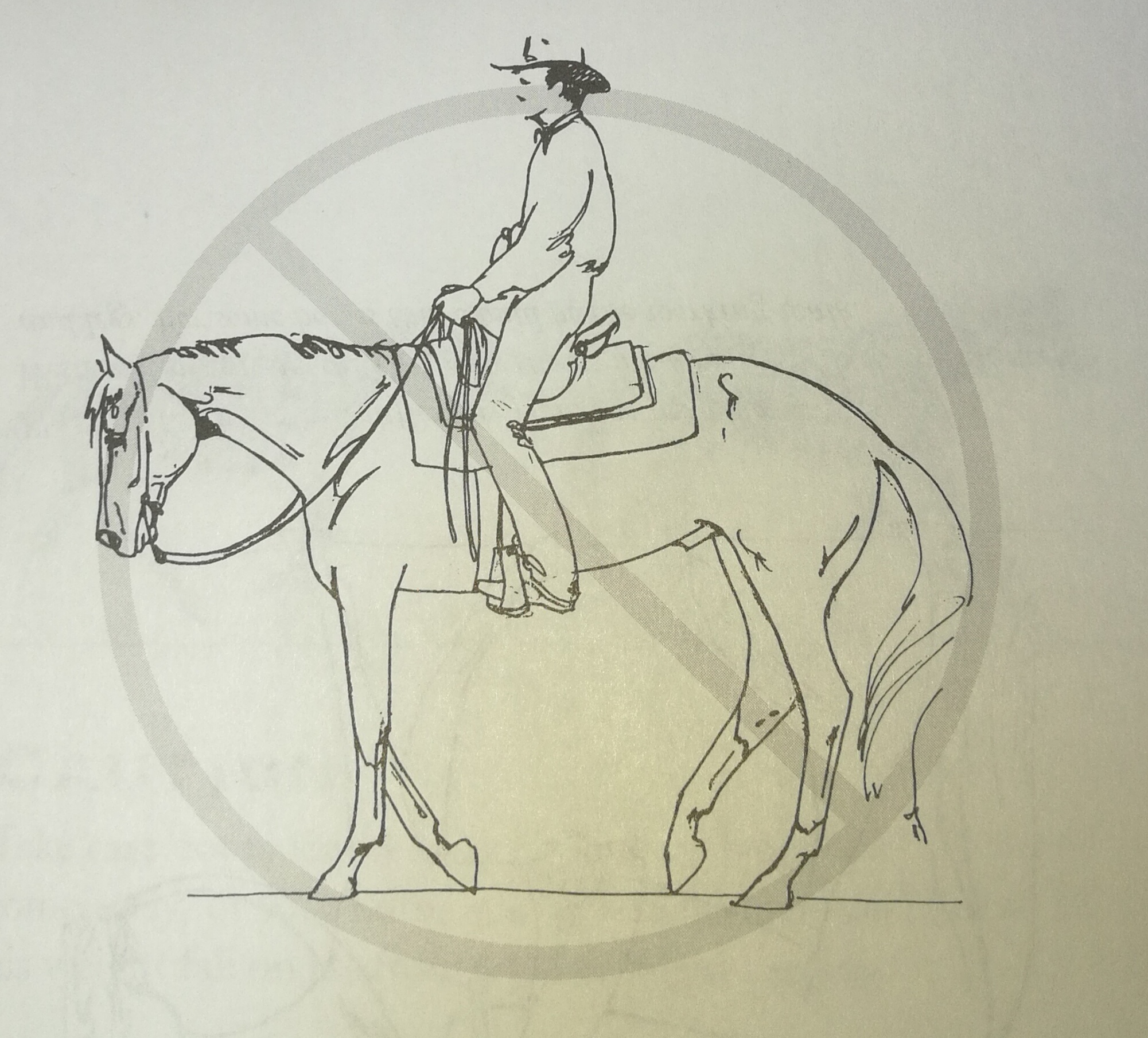 Некорректно (справа): шаги лошади укорочены и им не хватает ритмичного движения вперед, утерян четырехтактный ритм. У нее могут быть паузы в шагах, ее опущенная голова и уход «за вертикаль» не говорят «расслабленный и грациозный», они говорят «неуверенный и запуганный».