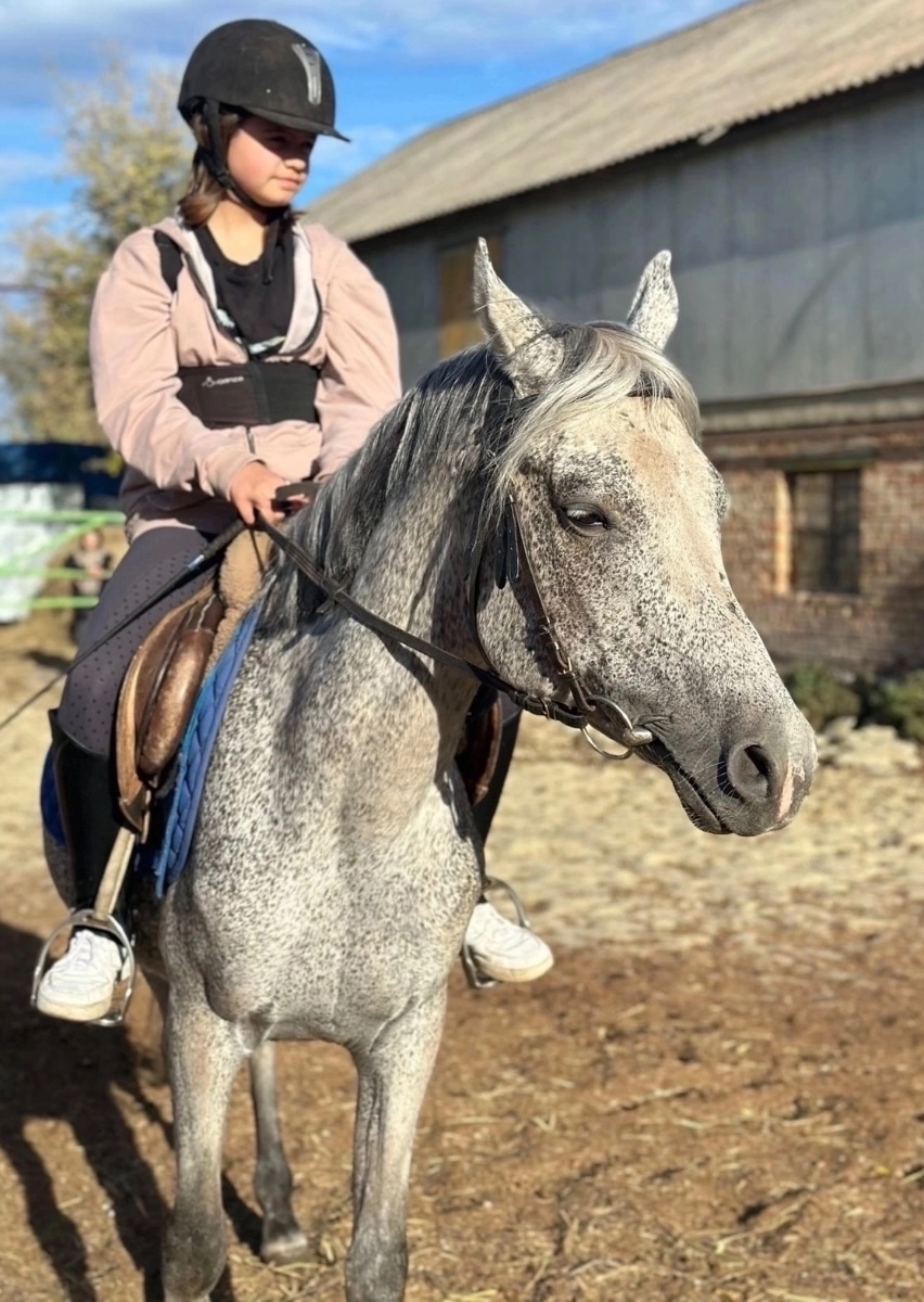 Имеет небольшой стартовый опыт под детьми в маршрутах до 75 см. Работает под детьми, даже самыми маленькими. Не жеребцует, ведет себя прилично. Послушный и добронравный.