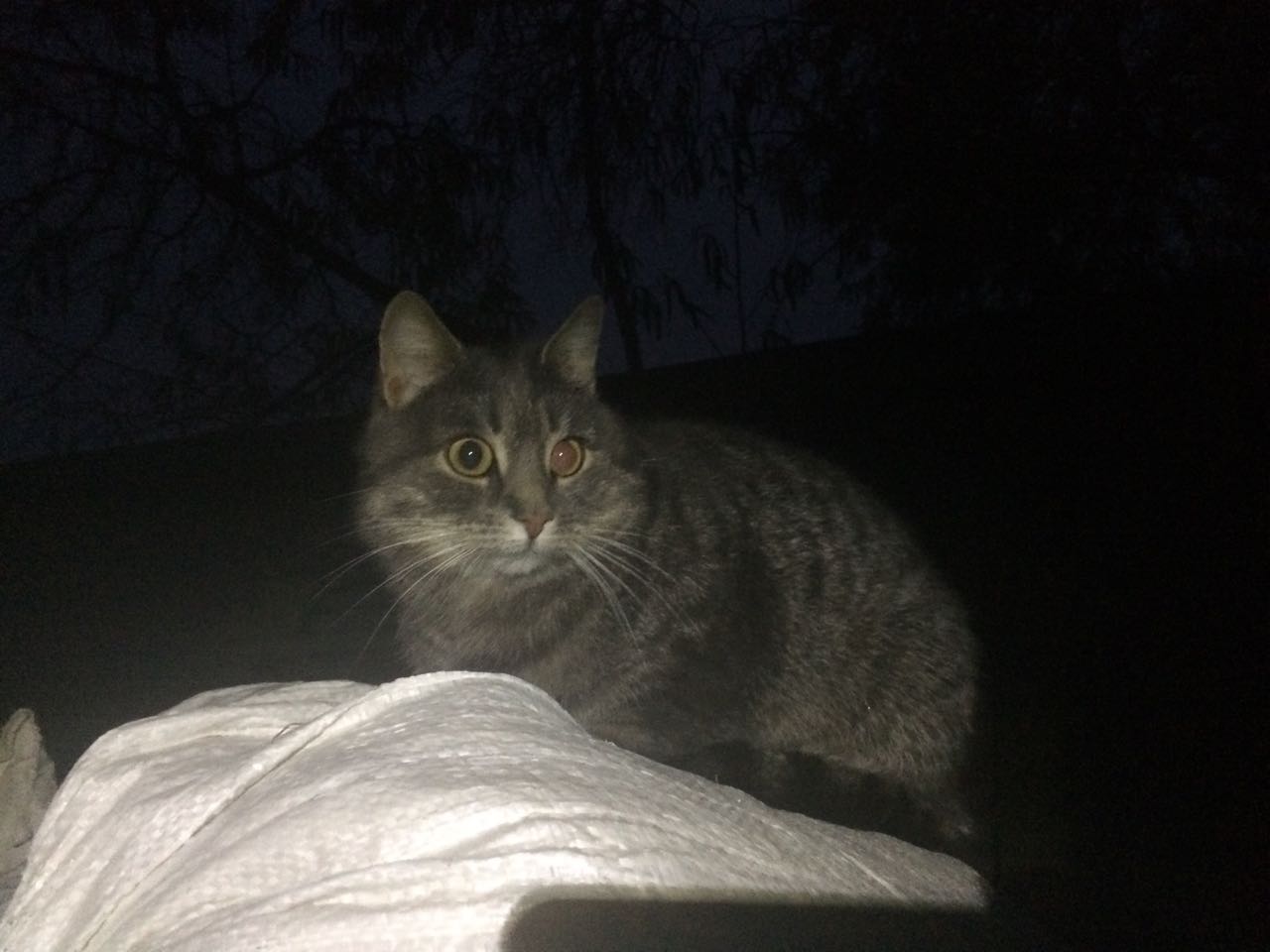 Ловит мышек. Жалко его, холодно же. В доме и конюшне свои кошки, не запустишь туда. А в сеннике холодно