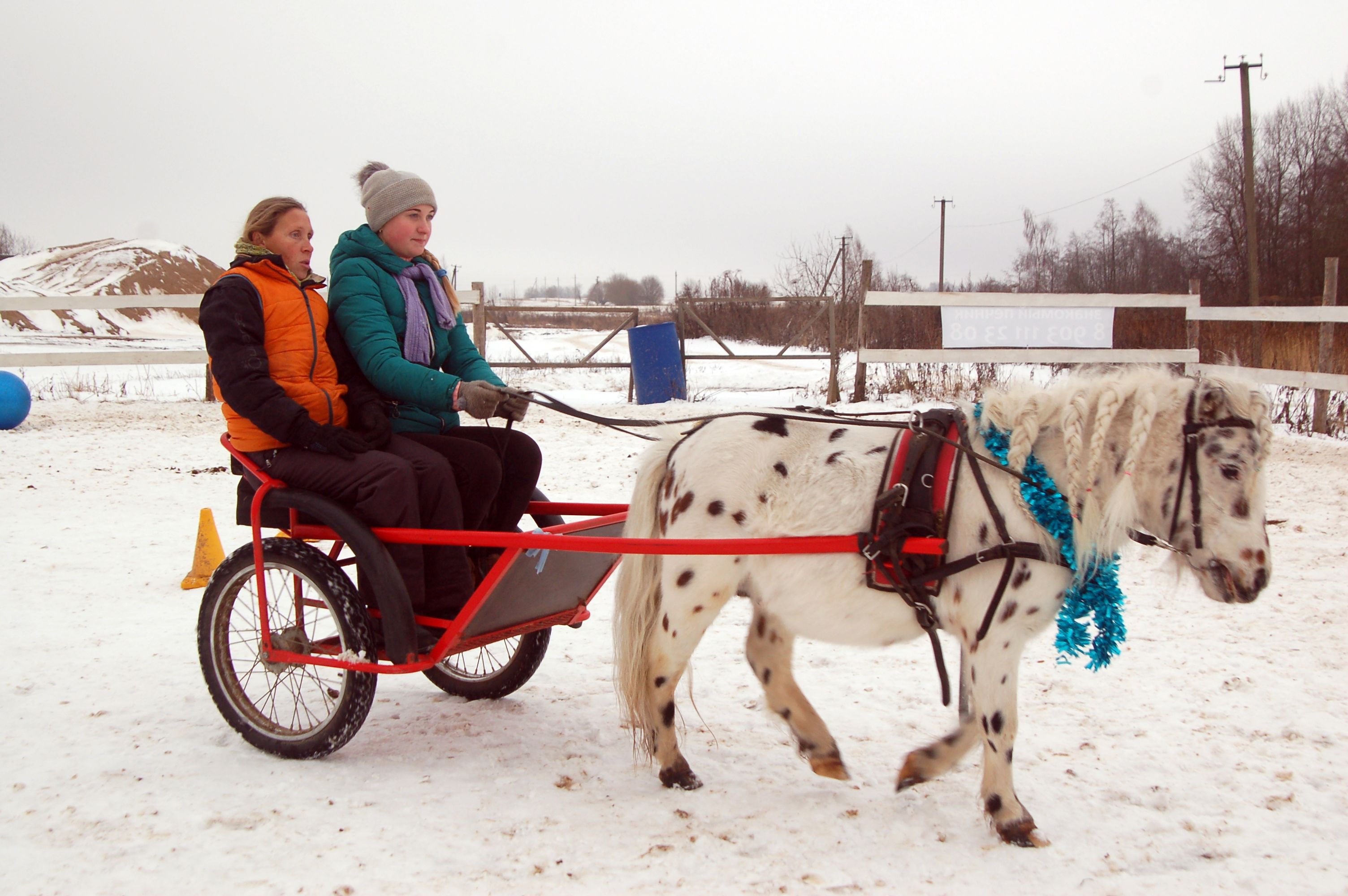 В сани/экипаж заезжать не планирую, дети приходят и постоянно пытаются на них верхом забраться, к конце зимы пробовала обычные детские санки прицепить к пони и детям предложить покататься те наотрез отказались.