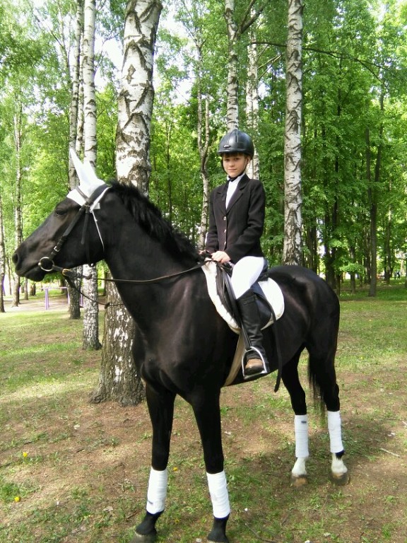 Предлагается к продаже замечательная кобыла Мирабель вороной масти 2012г.р. Полукровная рост 157в х.л. подойдёт для обучения и для любителей также для детей напрыгана до 100см , работает в джигитовке, заняла 2-е место на конной выставке в Минске по лошадям хобби класса. принимала участие в военно-исторических реконструкциях. тел. +375257691123; +375298389147