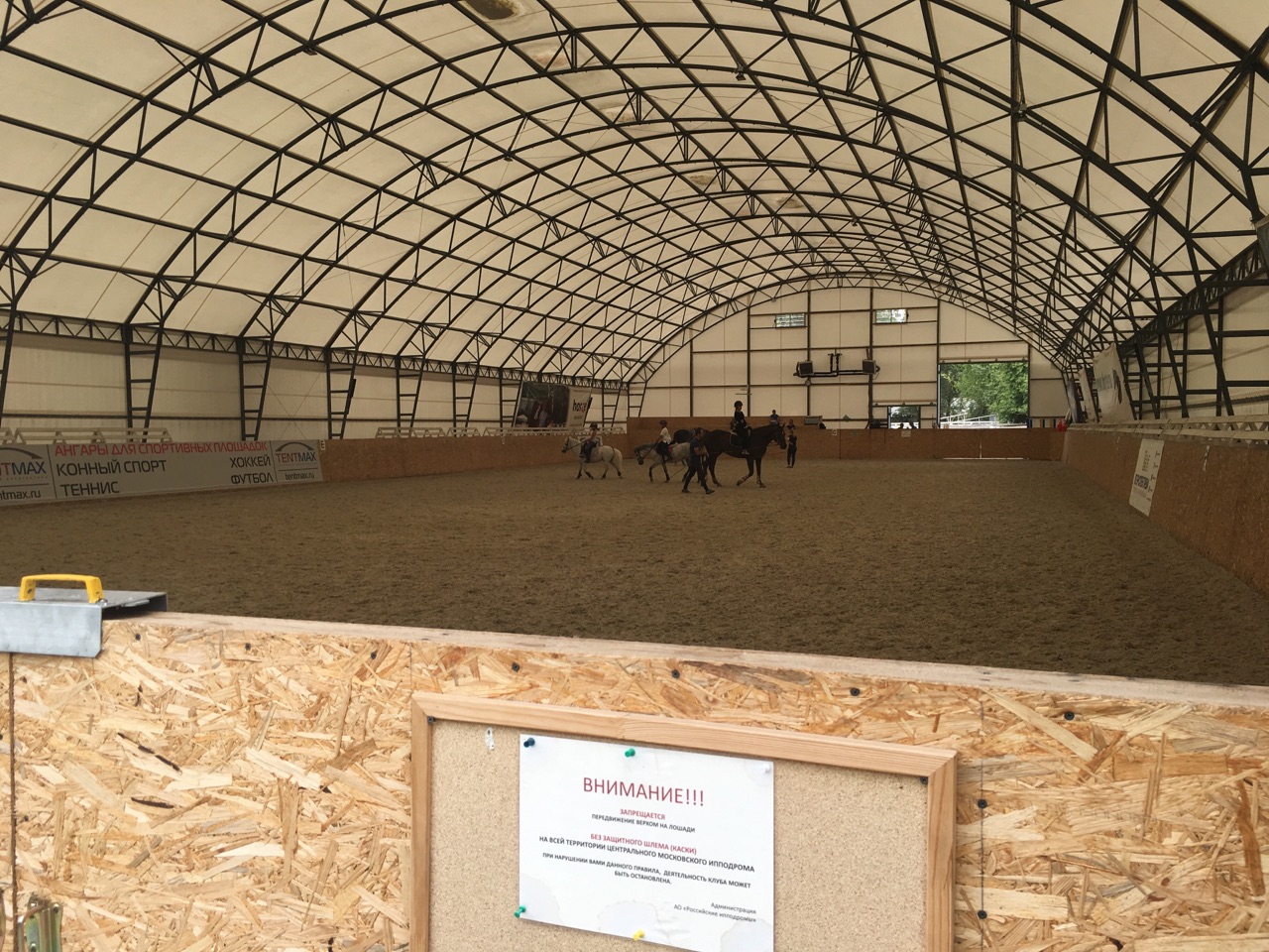 Занятия проходят на плацу, летом на плацу в центре бегового круга, есть возможность воспользоваться Большим и Малым(бочкой) манежами.