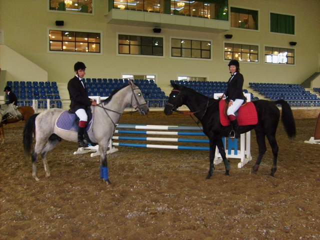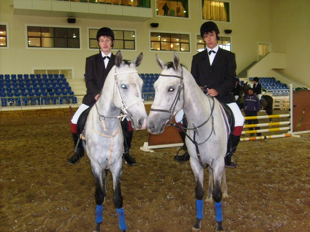 Далось нам всем это открытие, конечно, большим напряжением. И погодка подвела - резко похолодало и полили дожди, так что пришлось немного померзнуть. Также пришлось столкнуться с эстремальными условиями - толпы невоспитанной, орущей публики, громкая музыка, лопающиеся воздушные шары. Все лошади носились по манежу с выпученными глазами, но, к счастью, никто ни с кем не столкнулся, и отпрыгали нормально (нас было на открытом плацу 6 всадников, трое должны были ездить с вольтиками и переменами, а трое - прыгать, создавать, так сказать, антураж открываемому объекту. Ничего, все справились) Фото непосредственно с выступления нет - поскольку выступали перед президентом, то несанкционированная фото- и видеосъемка была запрещена. Но местное телевидение нас снимало, и теперь периодически нас показывают по местным каналам.