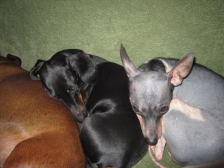 спасибо. две таксы. голый американский терьер и двортерьер :)
